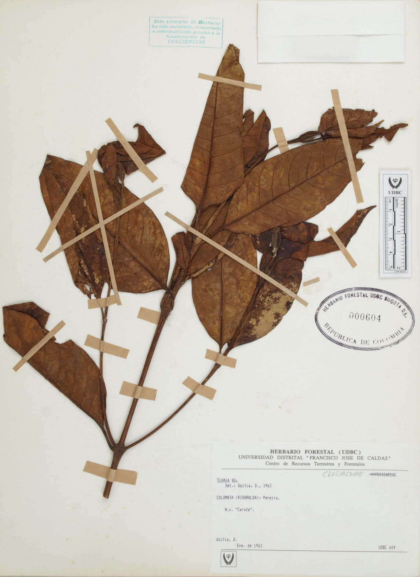 Fotografía del ejemplar Goitia, D., determinado como Vismia sp. en el año 1963