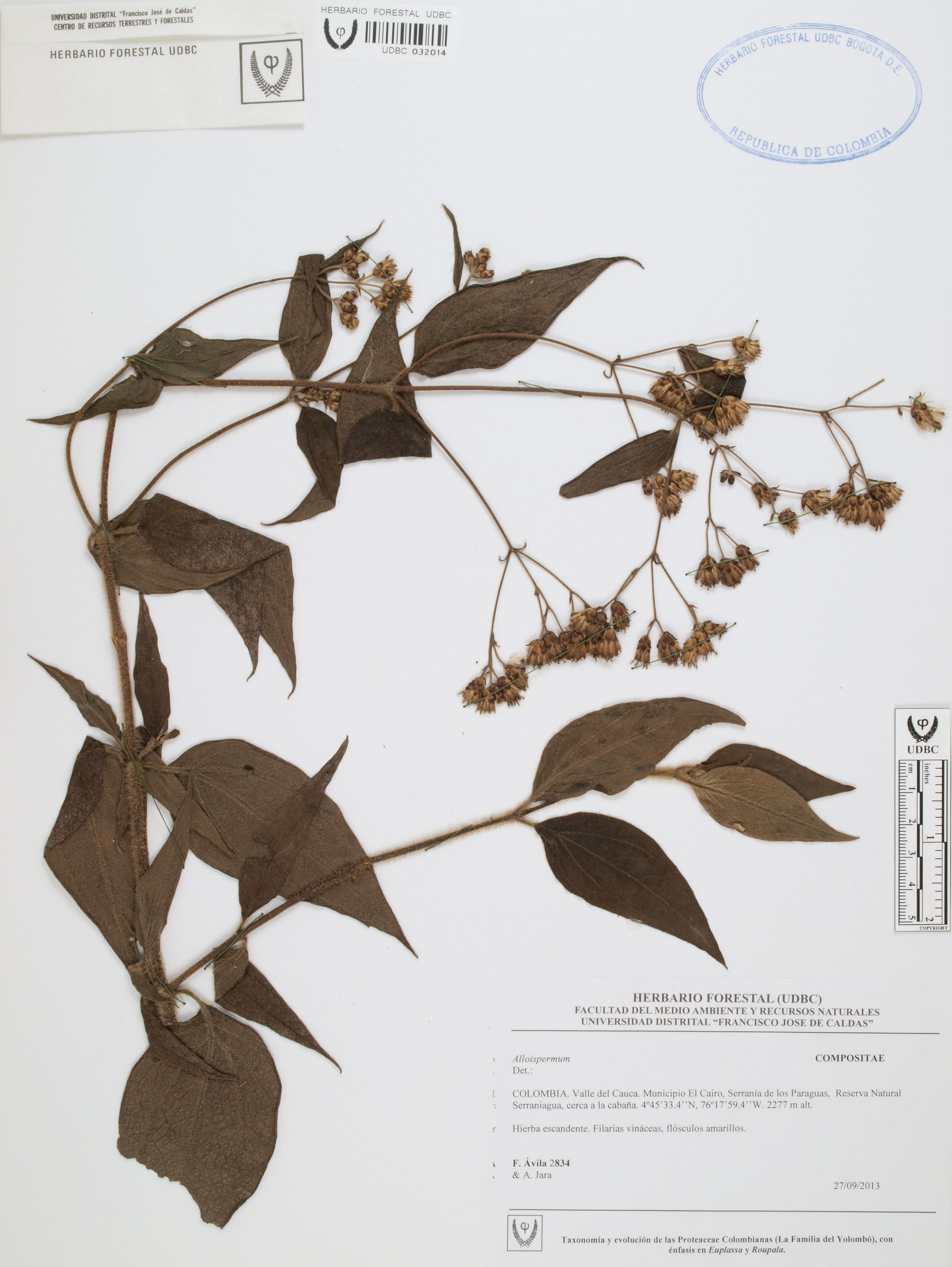 Fotografía del ejemplar Ávila, F. 2834, determinado como Alloispermum sp.