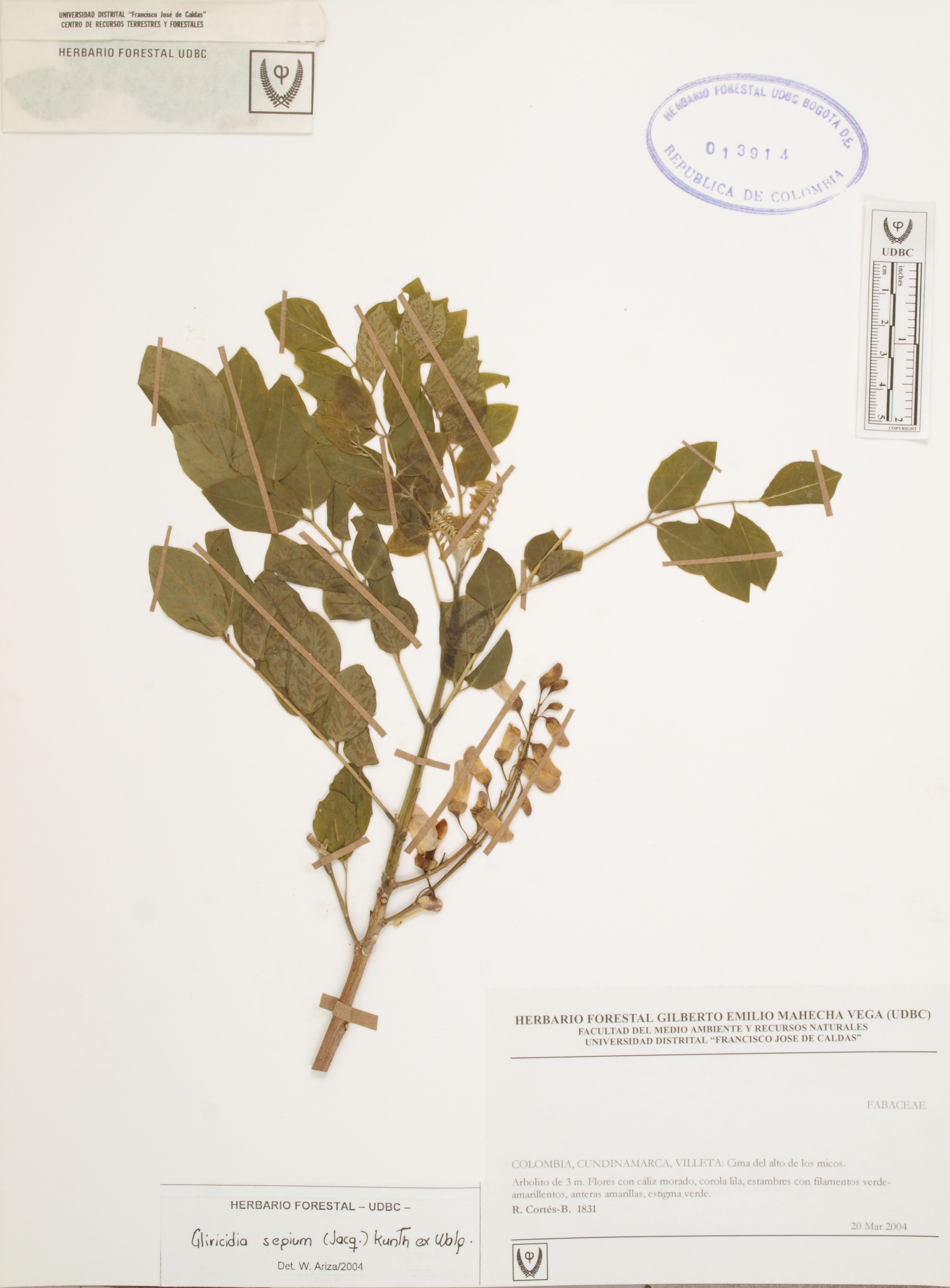 Fotografía del ejemplar Cortés-B., R. 1831, determinado como Gliricidia sepium en el año 2004
