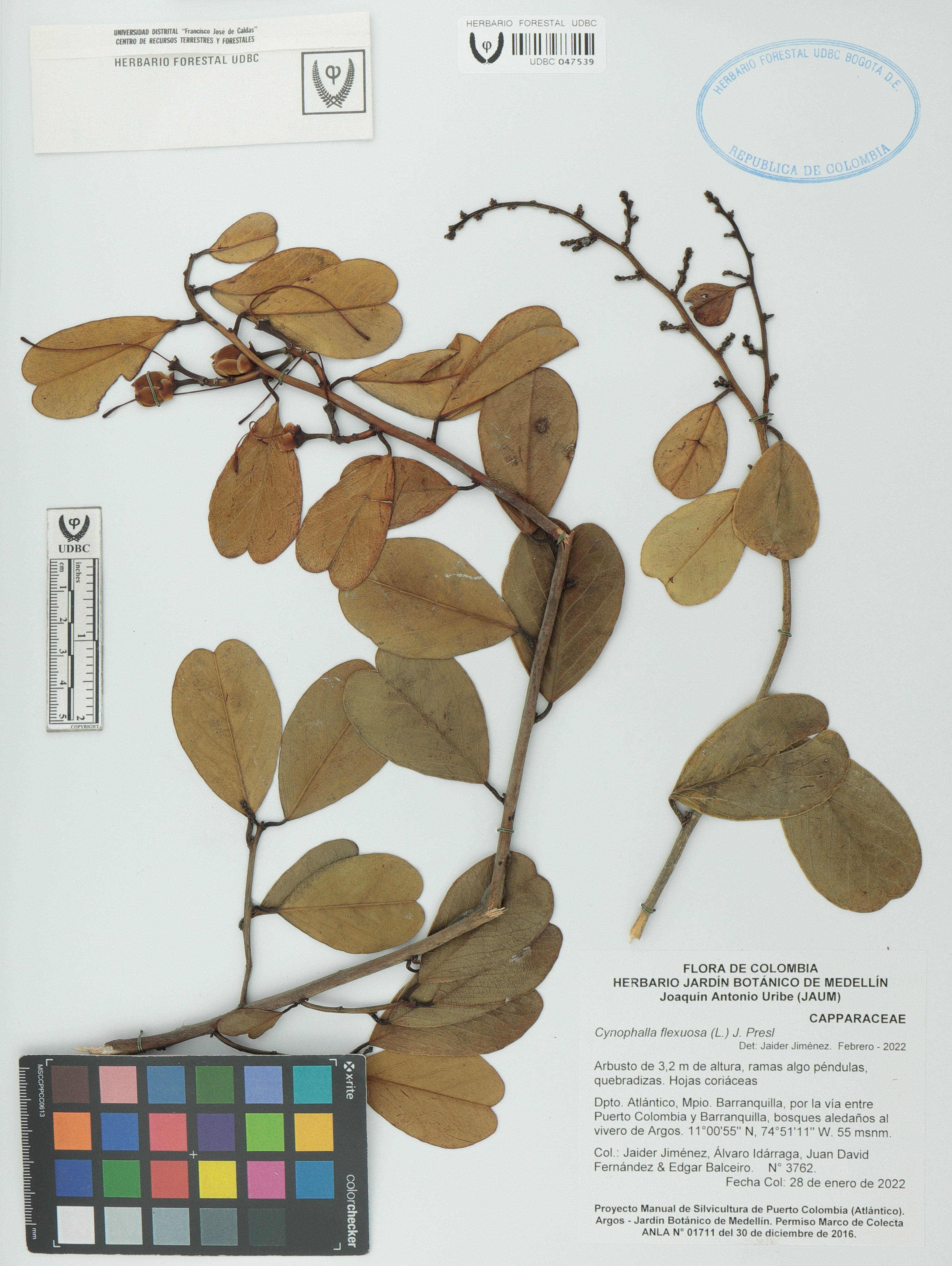 Fotografía del ejemplar Jiménez, J. 3762, determinado como Cynophalla flexuosa en el año 2022