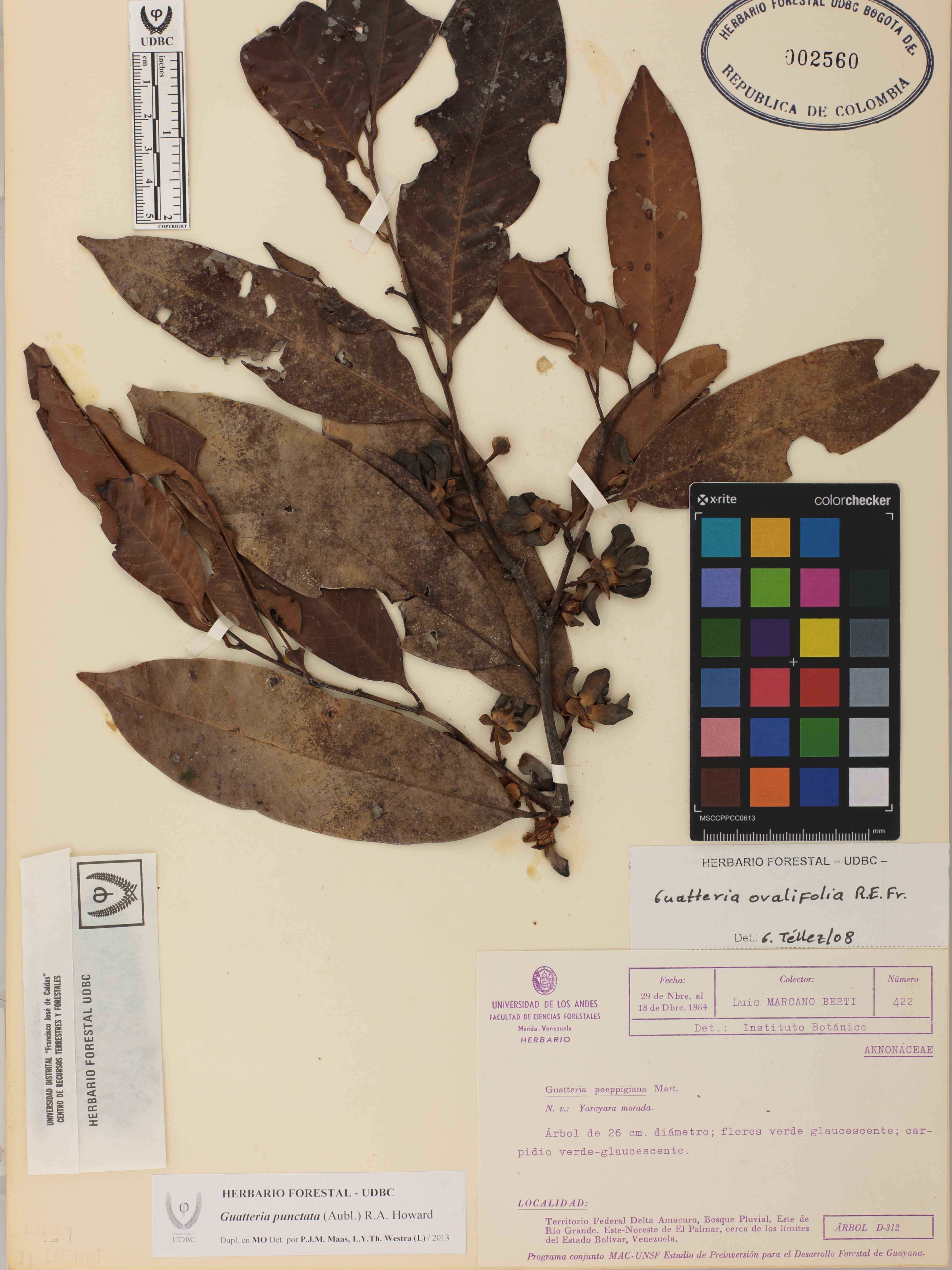 Fotografía del ejemplar Marcano, L. 422, determinado como Guatteria punctata en el año 2013