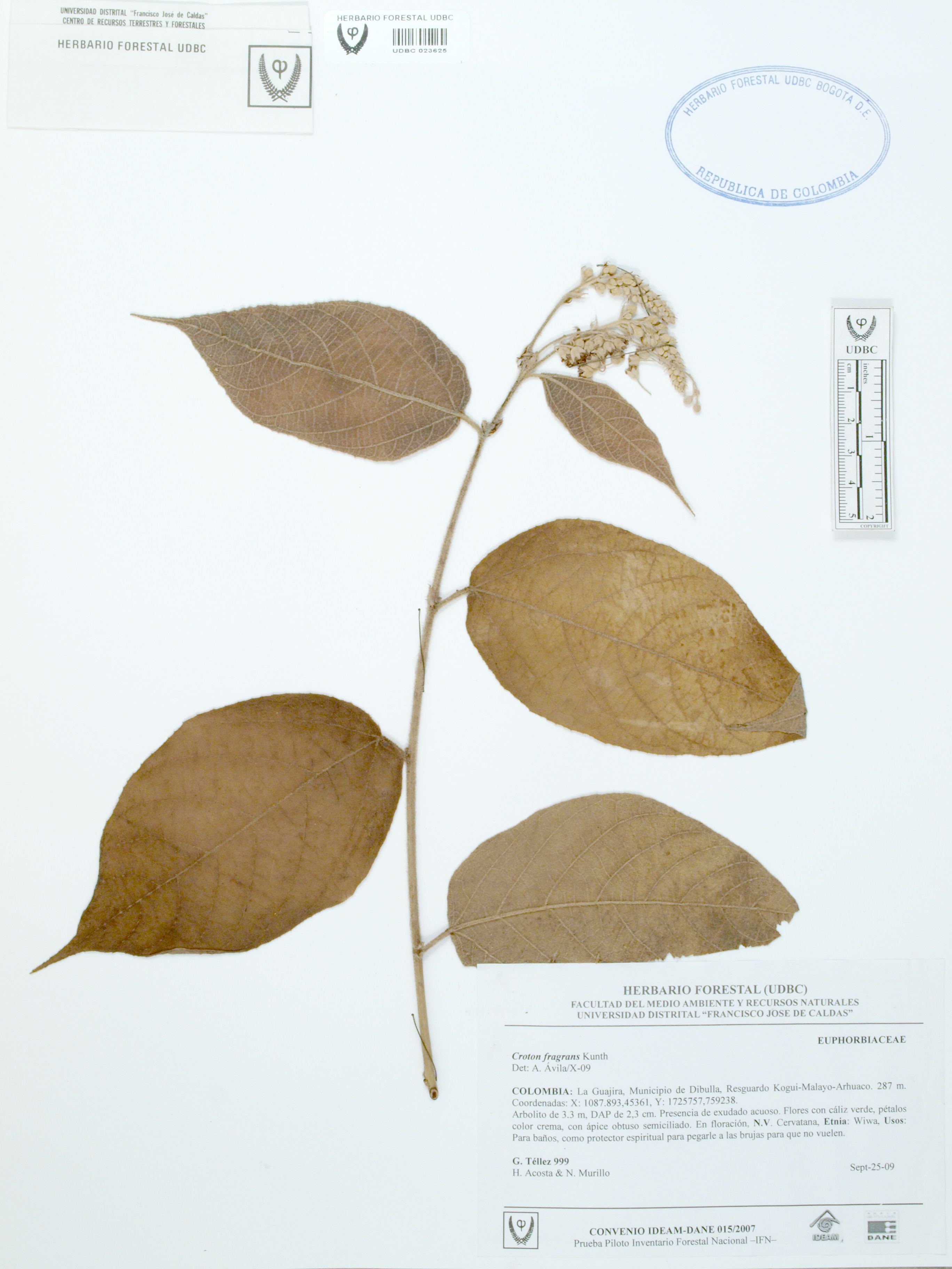 Fotografía del ejemplar Téllez, G. 999, determinado como Croton fragrans en el año 2009