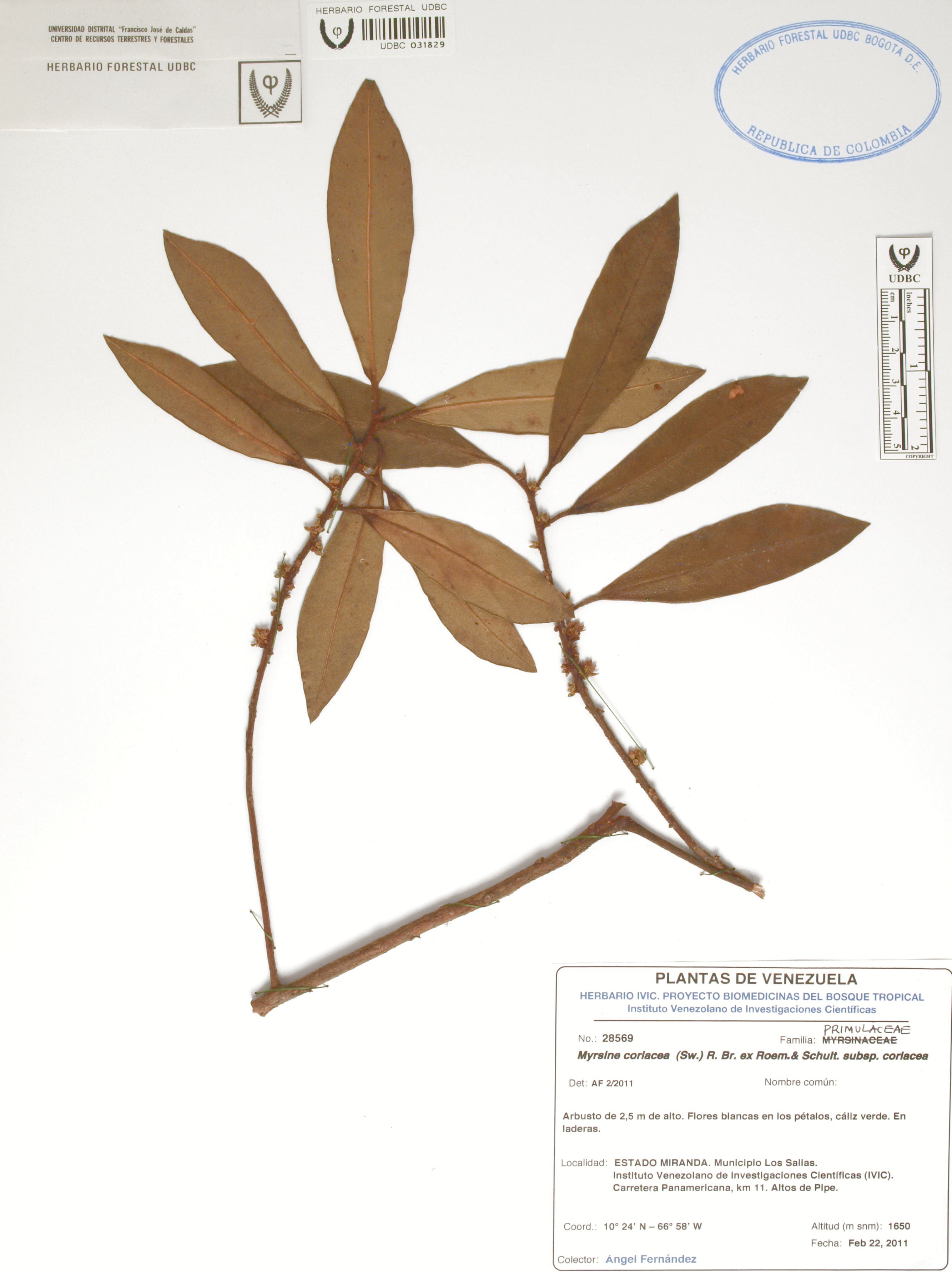 Fotografía del ejemplar Fernández, A. 28569, determinado como Myrsine coriacea