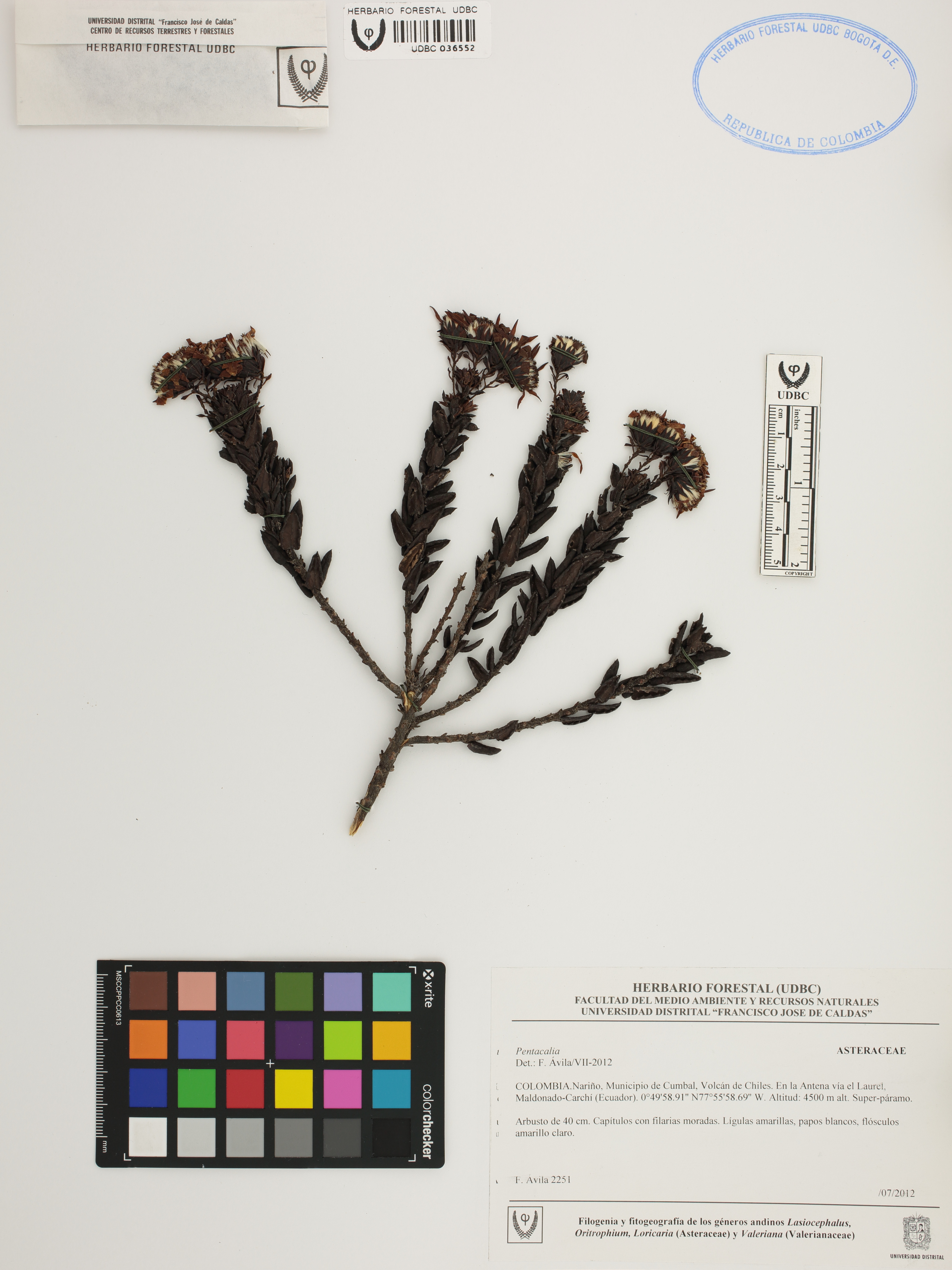 Fotografía del ejemplar Ávila, F. 2251, determinado como Pentacalia sp. en el año 2012