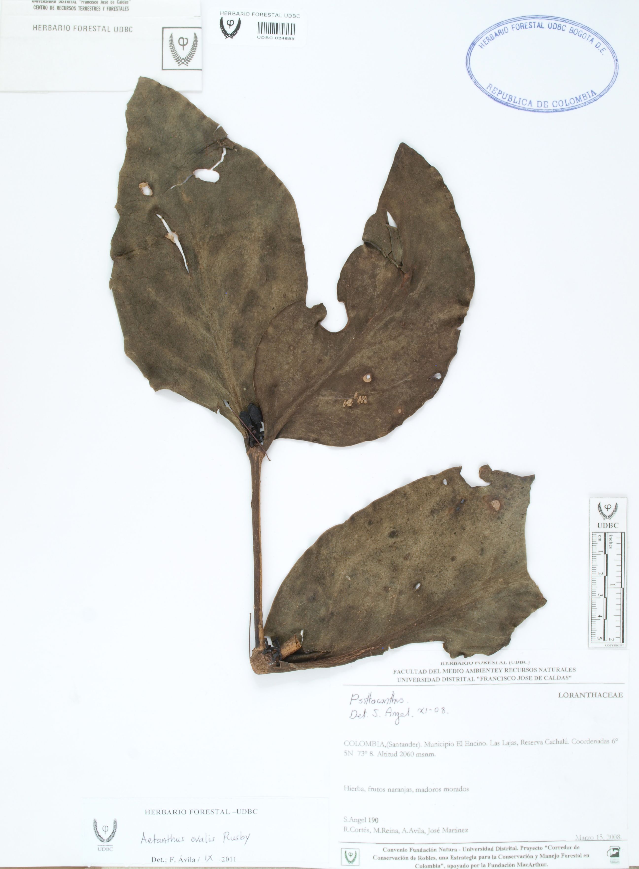 Fotografía del ejemplar Ángel, S. 190, determinado como Aetanthus ovalis en el año 2011