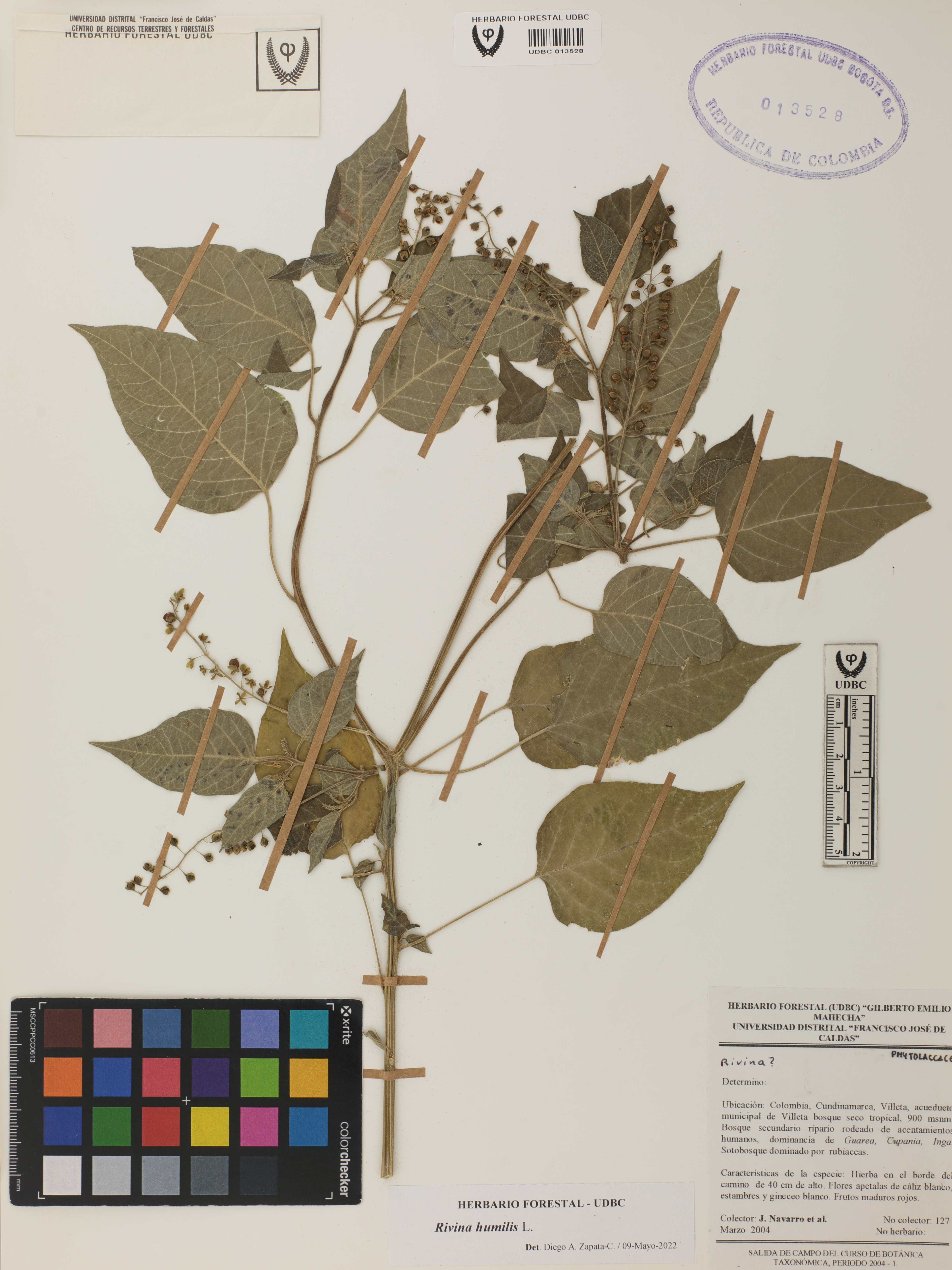 Fotografía del ejemplar Navarro, J. 127, determinado como Rivina humilis en el año 2022