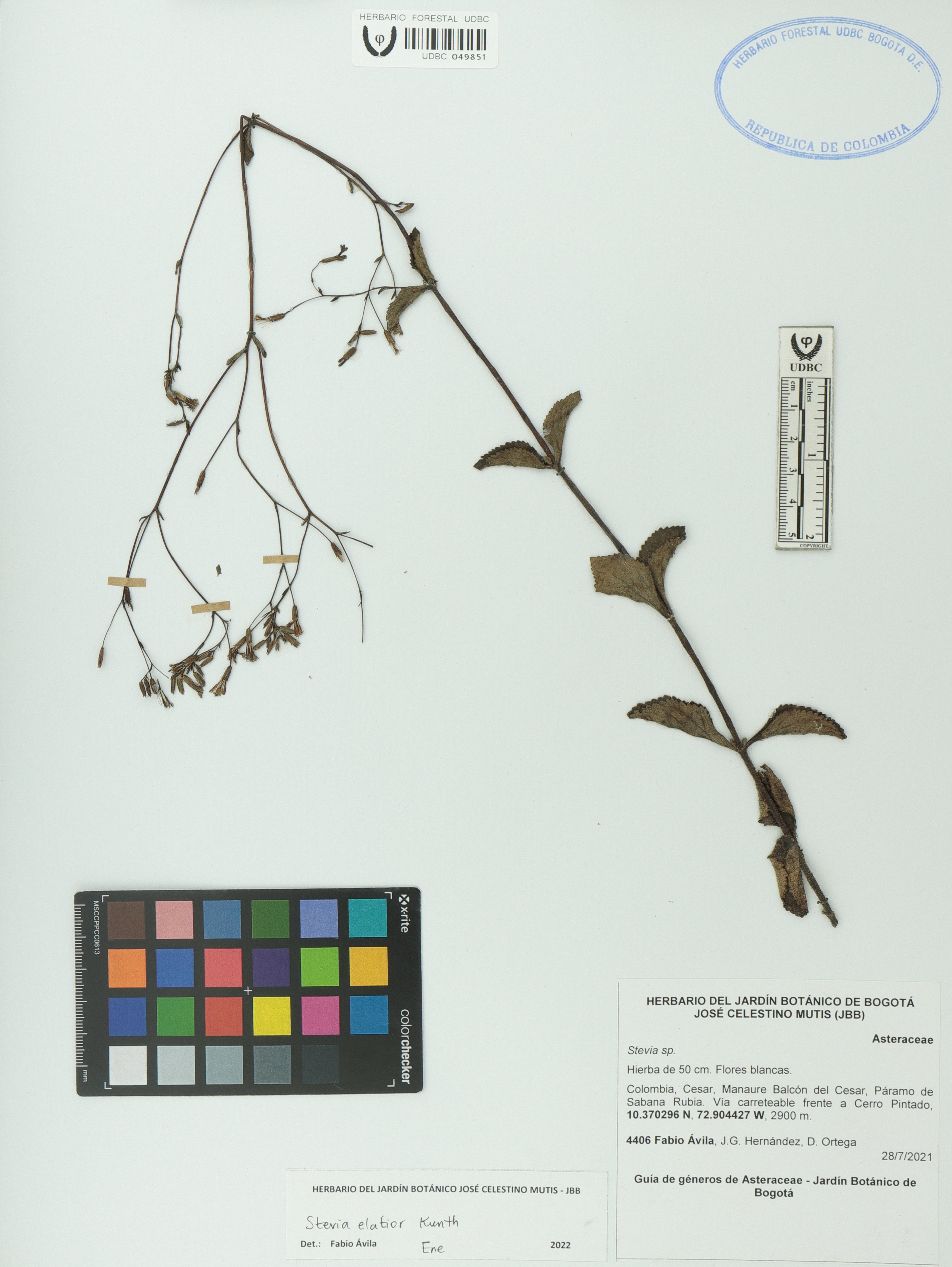 Fotografía del ejemplar Ávila, F. 4406, determinado como Stevia elatior en el año 2022