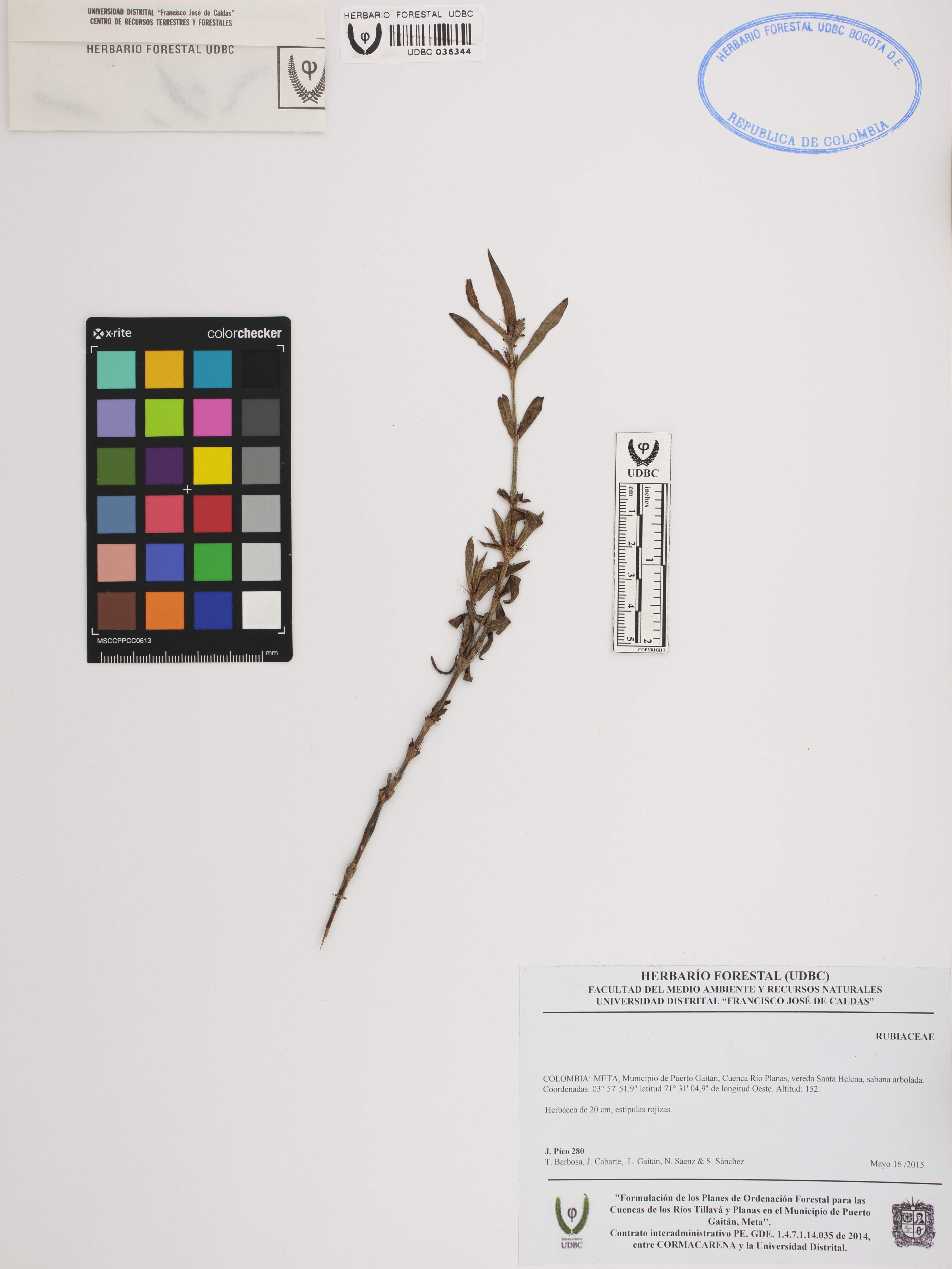 Fotografía del ejemplar Pico, J. 280, determinado como Rubiaceae