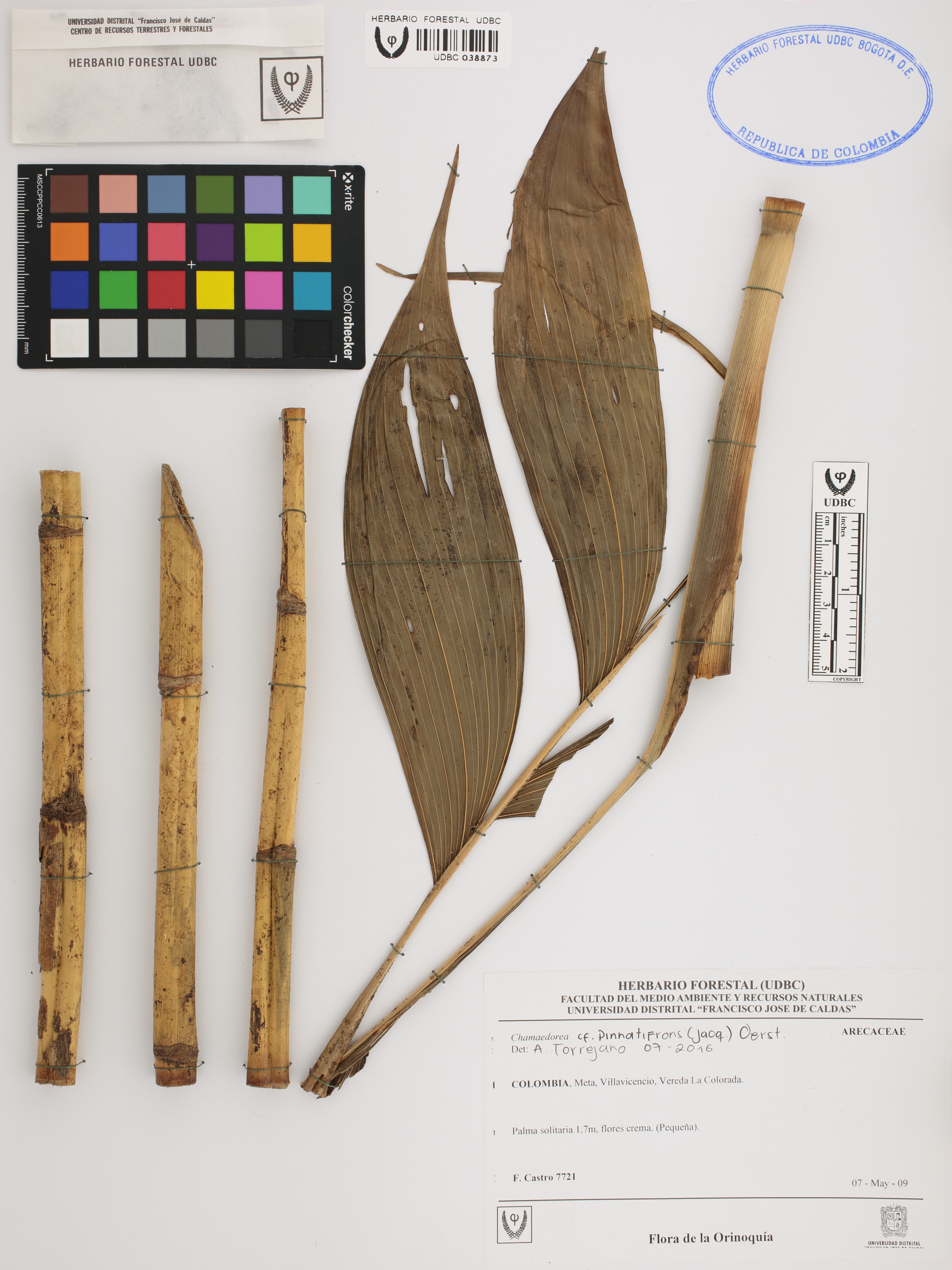 Fotografía del ejemplar Castro, F. 7721, determinado como Chamaedorea pinnatifrons en el año 2016