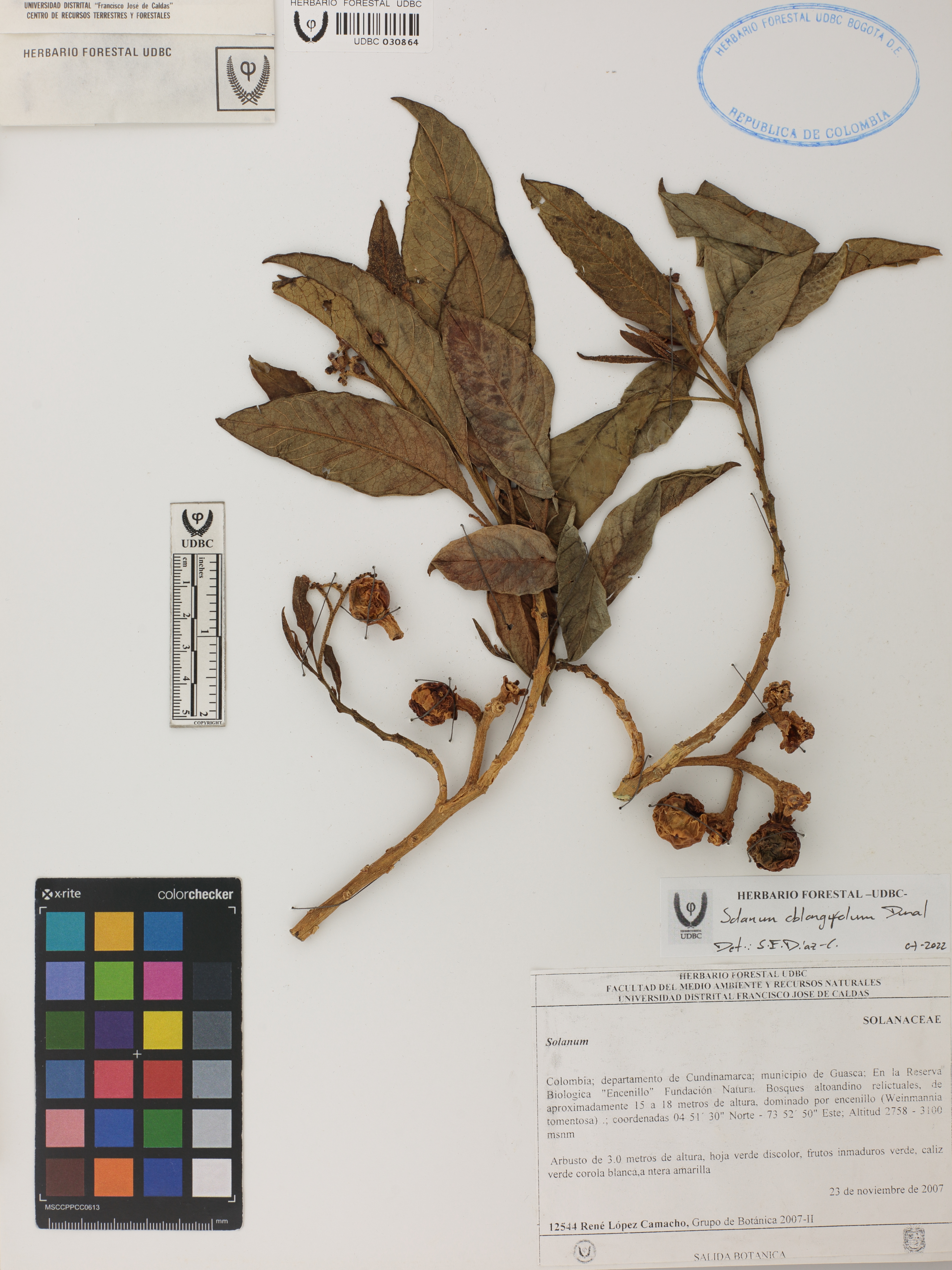 Fotografía del ejemplar López, R. 12544, determinado como Solanum oblongifolium en el año 2022