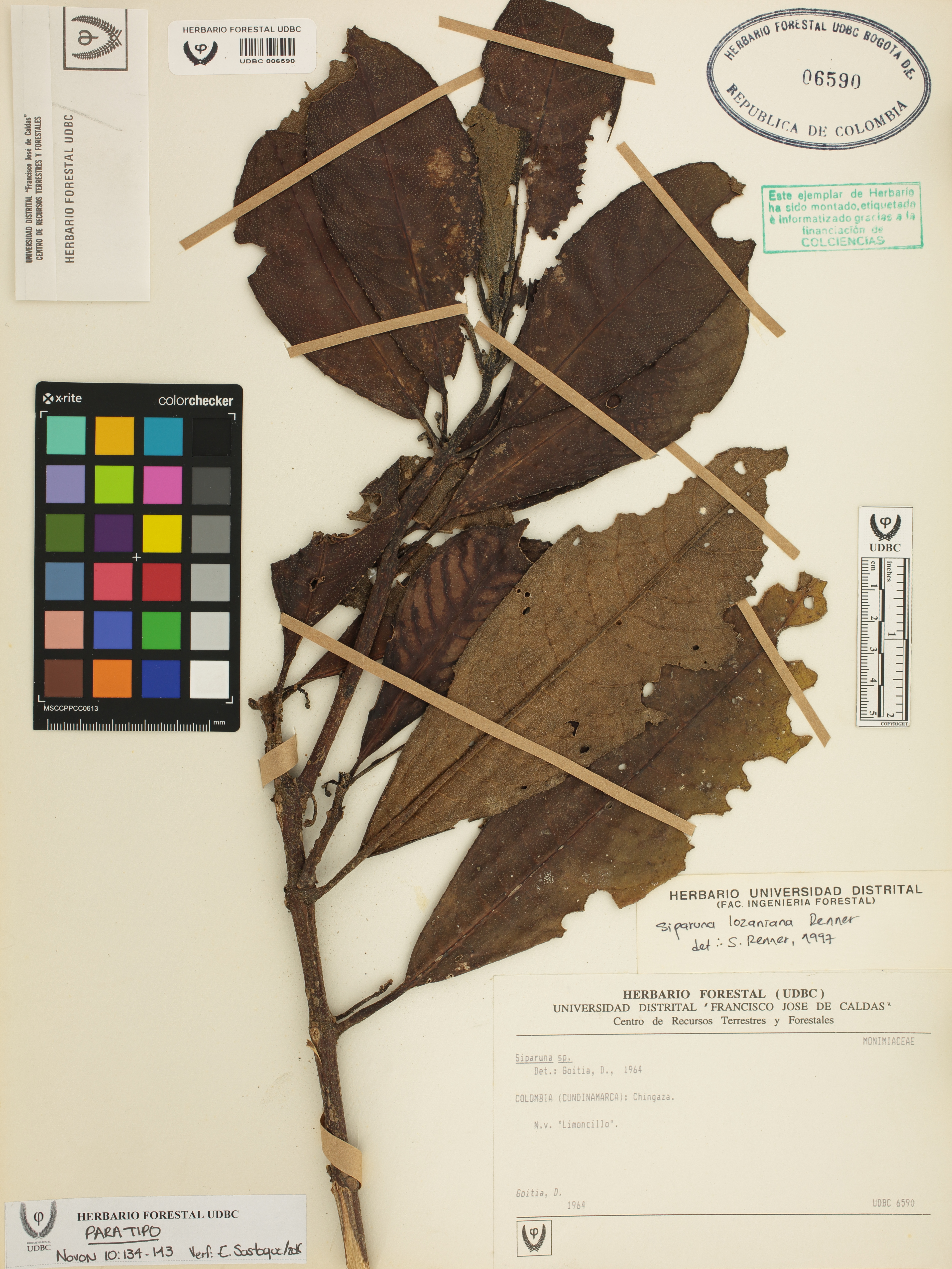 Fotografía del ejemplar Goitia, D., Paratipo de Siparuna lozaniana