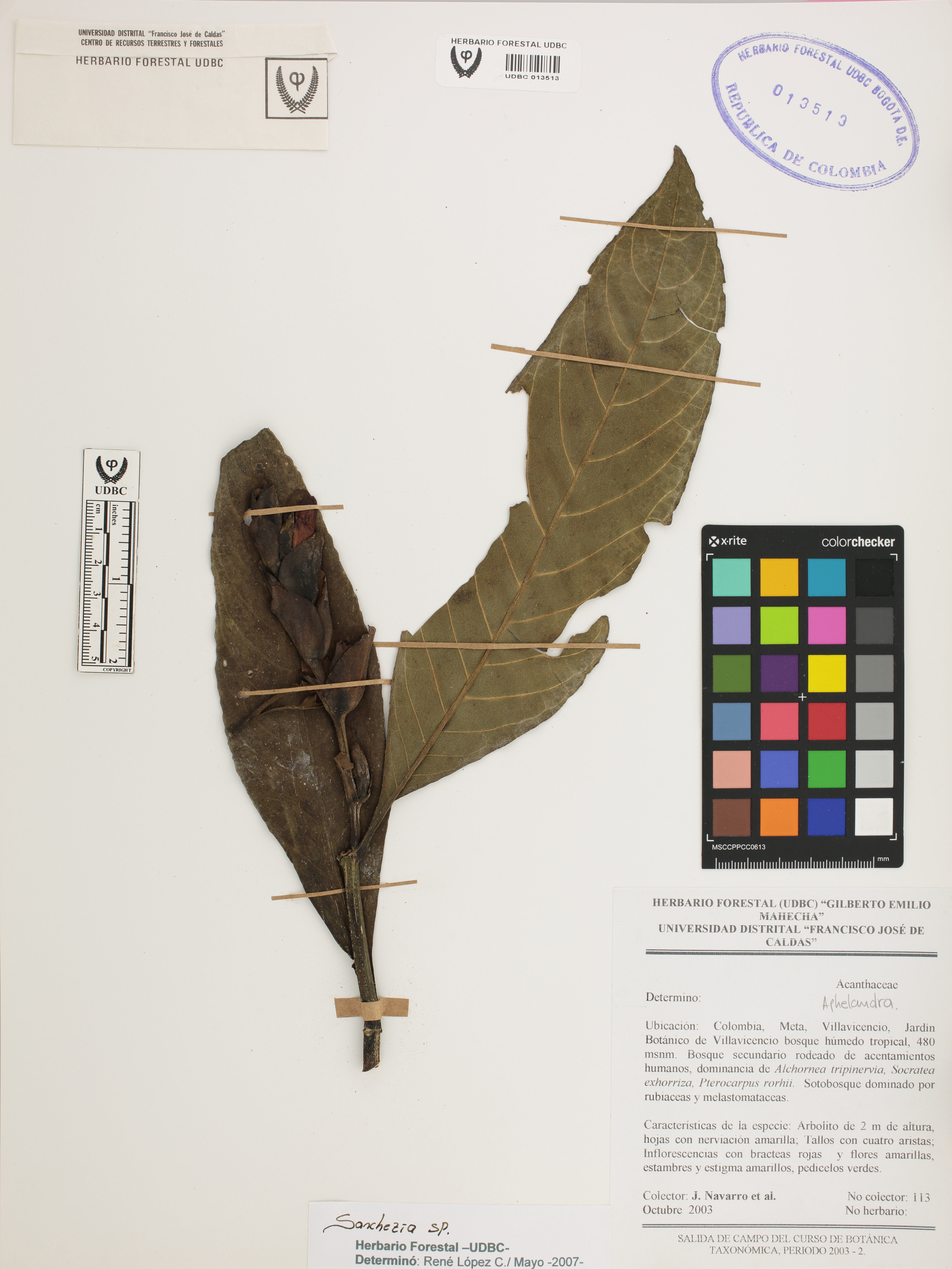 Fotografía del ejemplar Navarro, J. 113, determinado como Sanchezia sp. en el año 2007
