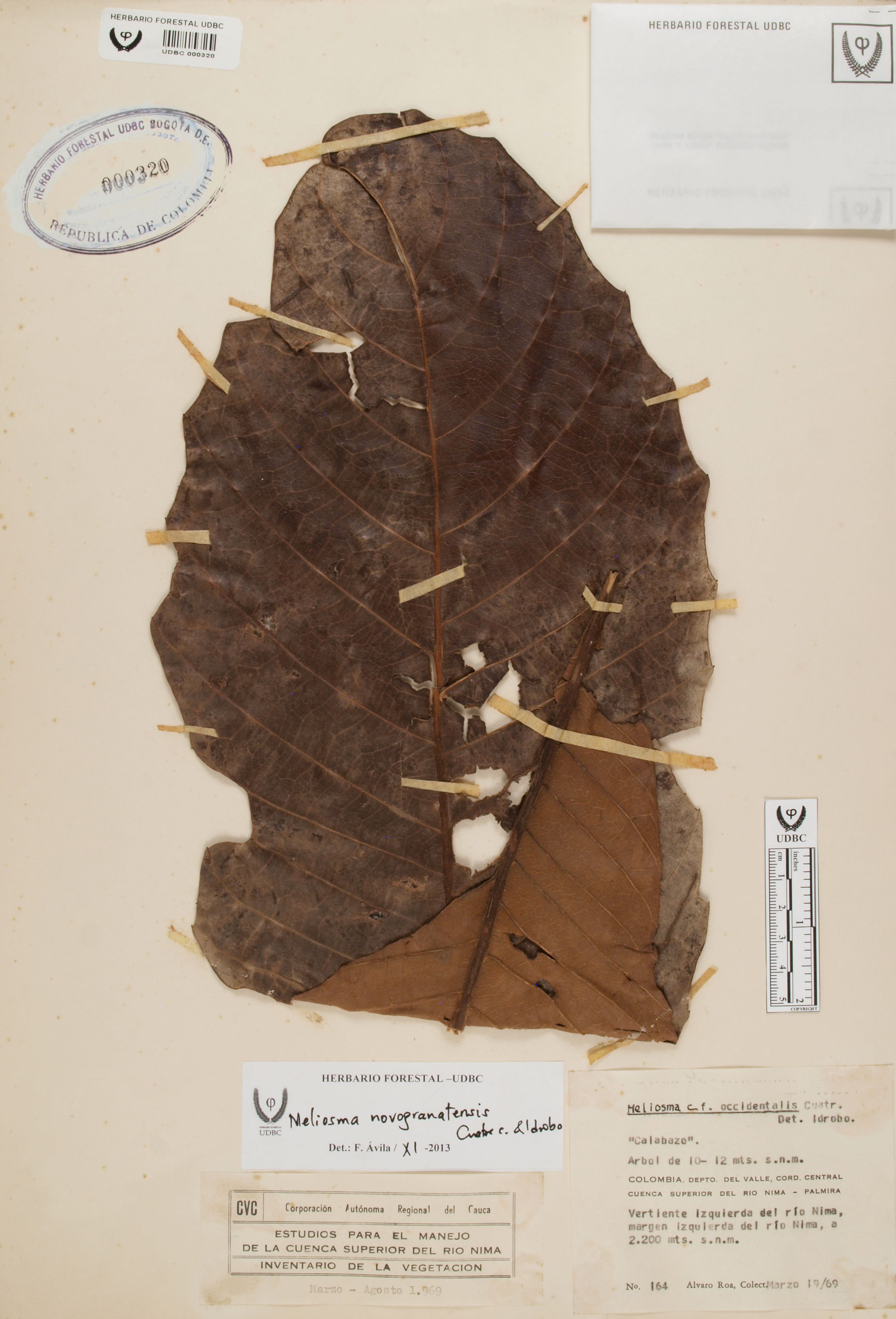 Fotografía del ejemplar Roa, A. 164, determinado como Meliosma novogranatensis en el año 2013