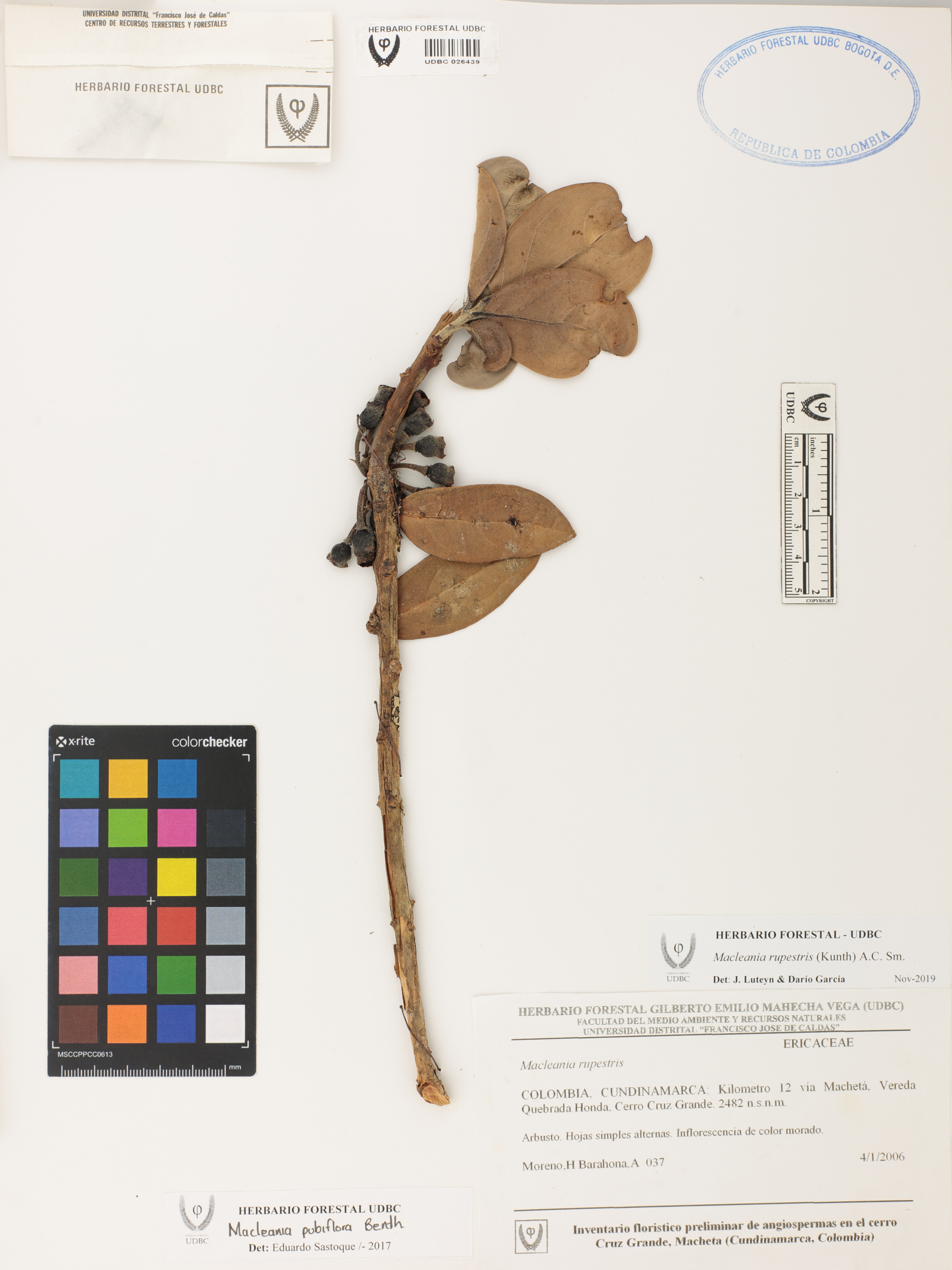 Fotografía del ejemplar Moreno, H. 37, determinado como Macleania rupestris en el año 2019