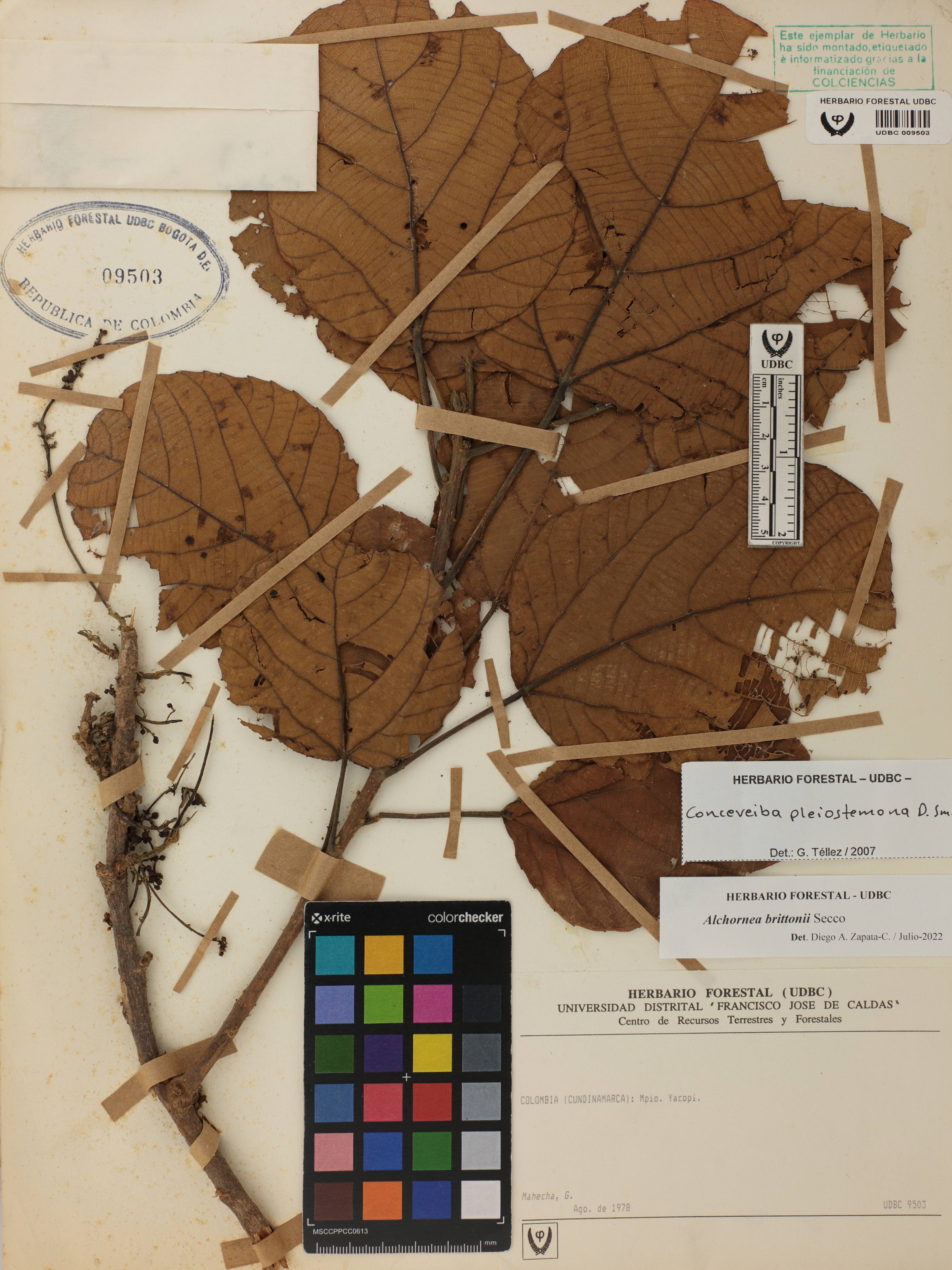 Fotografía del ejemplar Mahecha, G., determinado como Alchornea brittonii en el año 2022