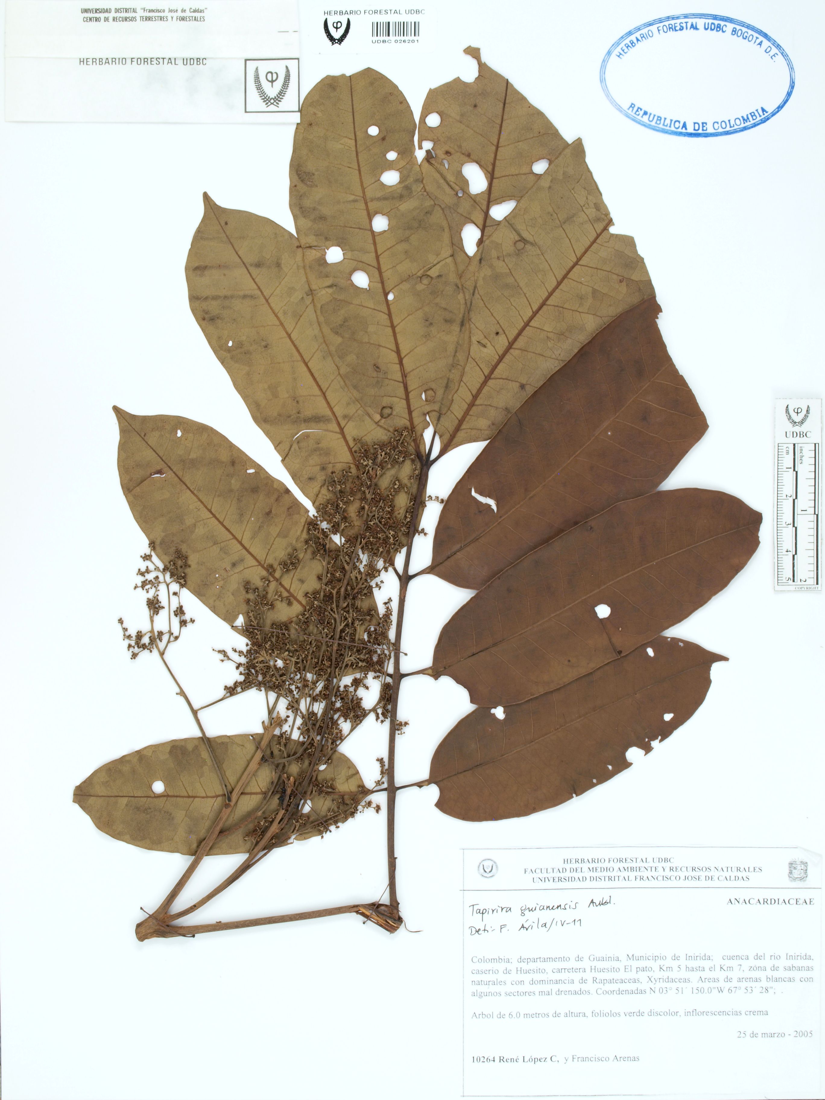 | dc.description | Fotografía del ejemplar López, R. 10264, determinado como Tapirira guianensis en el año 2011 | |