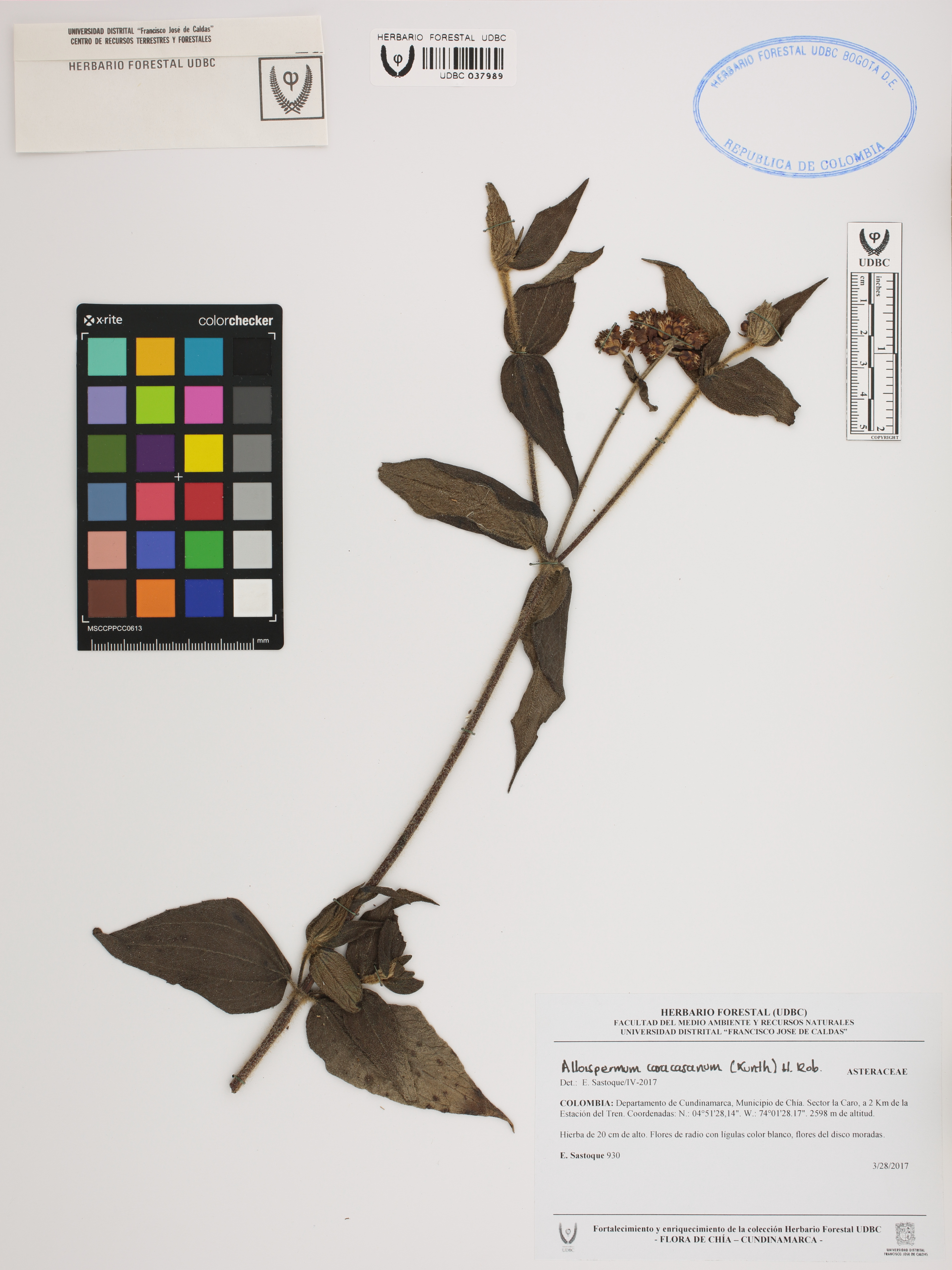 | dc.description | Fotografía del ejemplar Sastoque, E. 930, determinado como Alloispermum caracasanum en el año 2017 | |