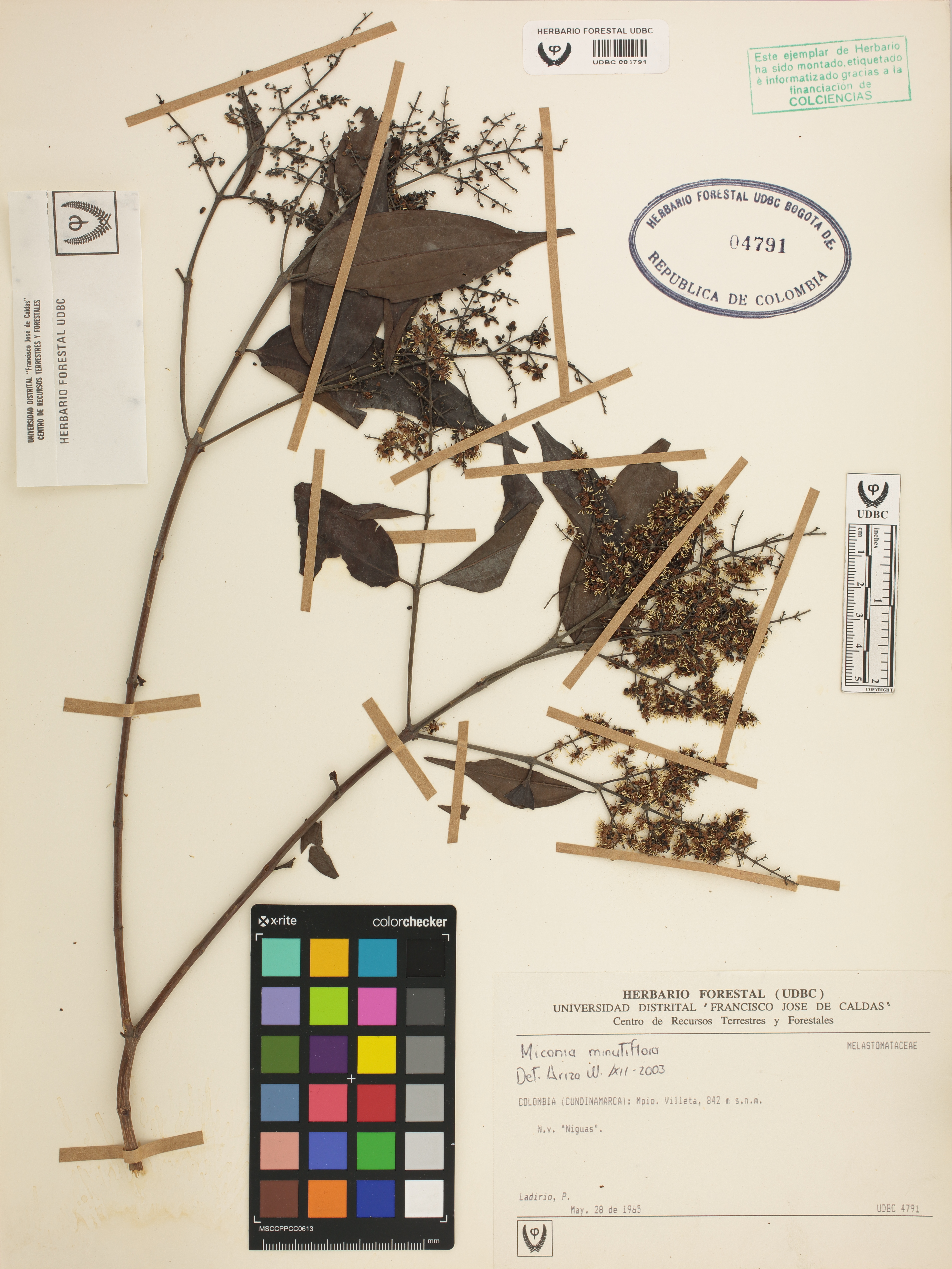 Fotografía del ejemplar Ladirio, P., determinado como Miconia minutiflora en el año 2003