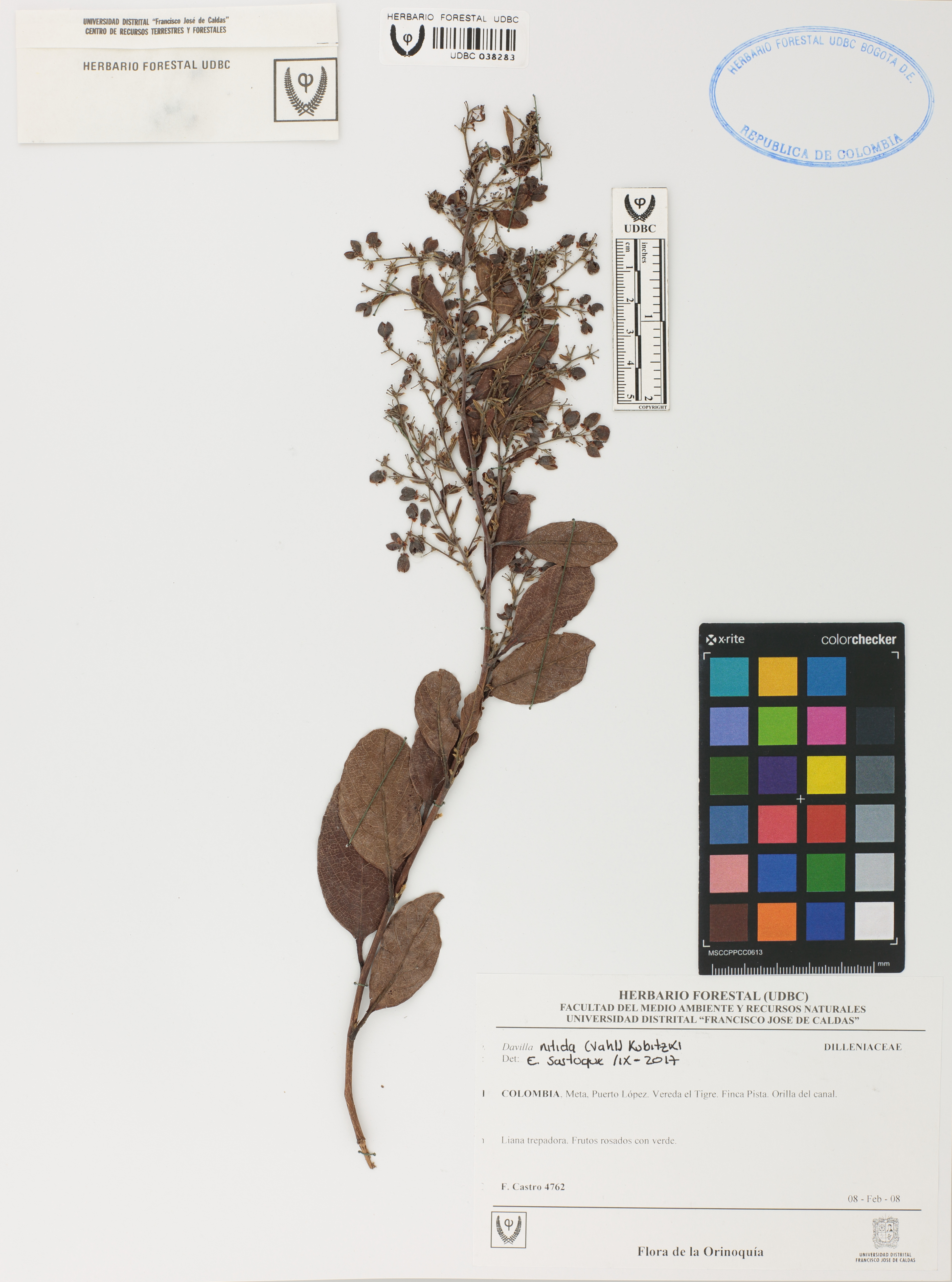 Fotografía del ejemplar Castro, F. 4762, determinado como Davilla nitida en el año 2017
