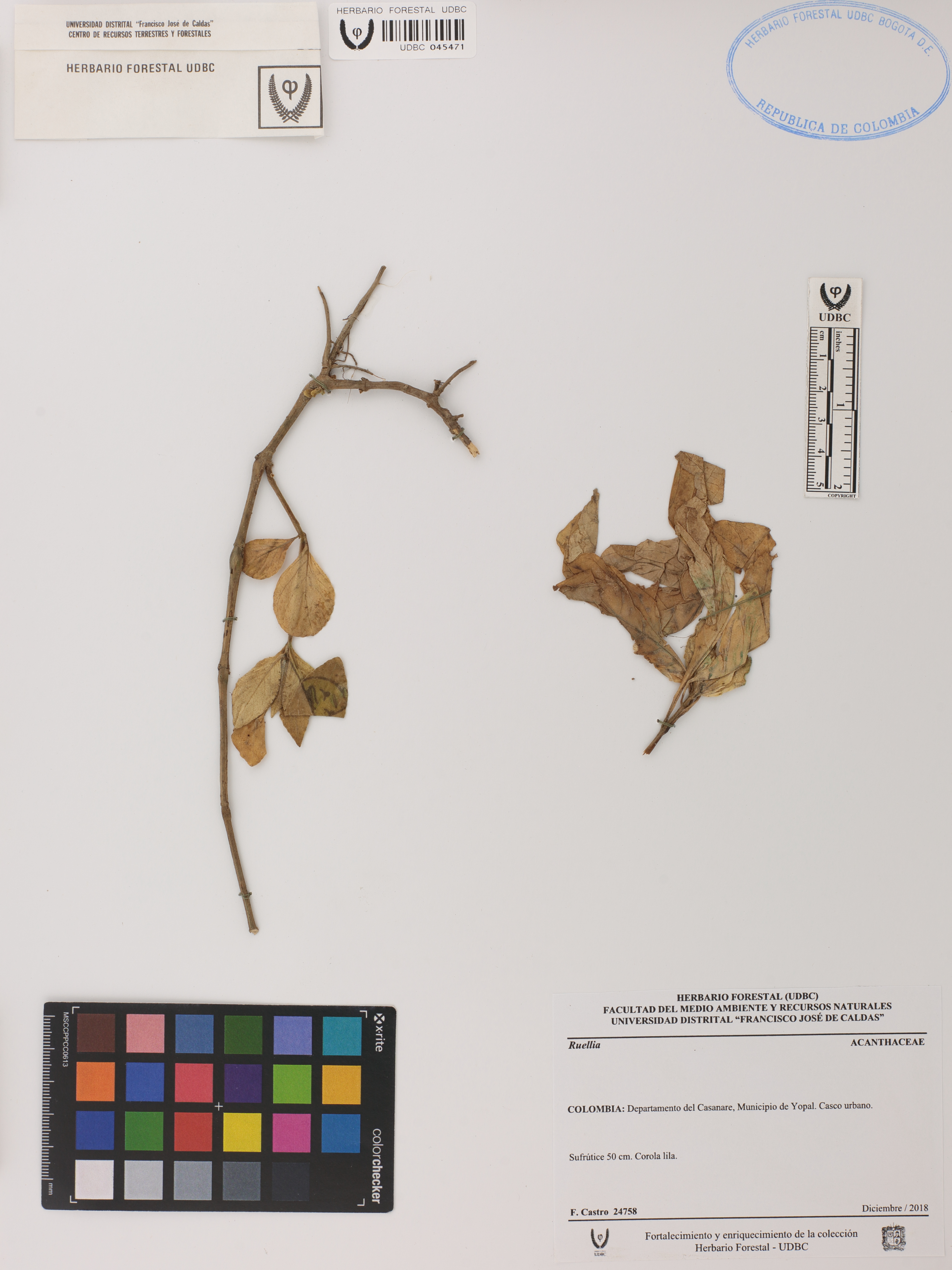Fotografía del ejemplar Castro, F. 24758, determinado como Ruellia sp.