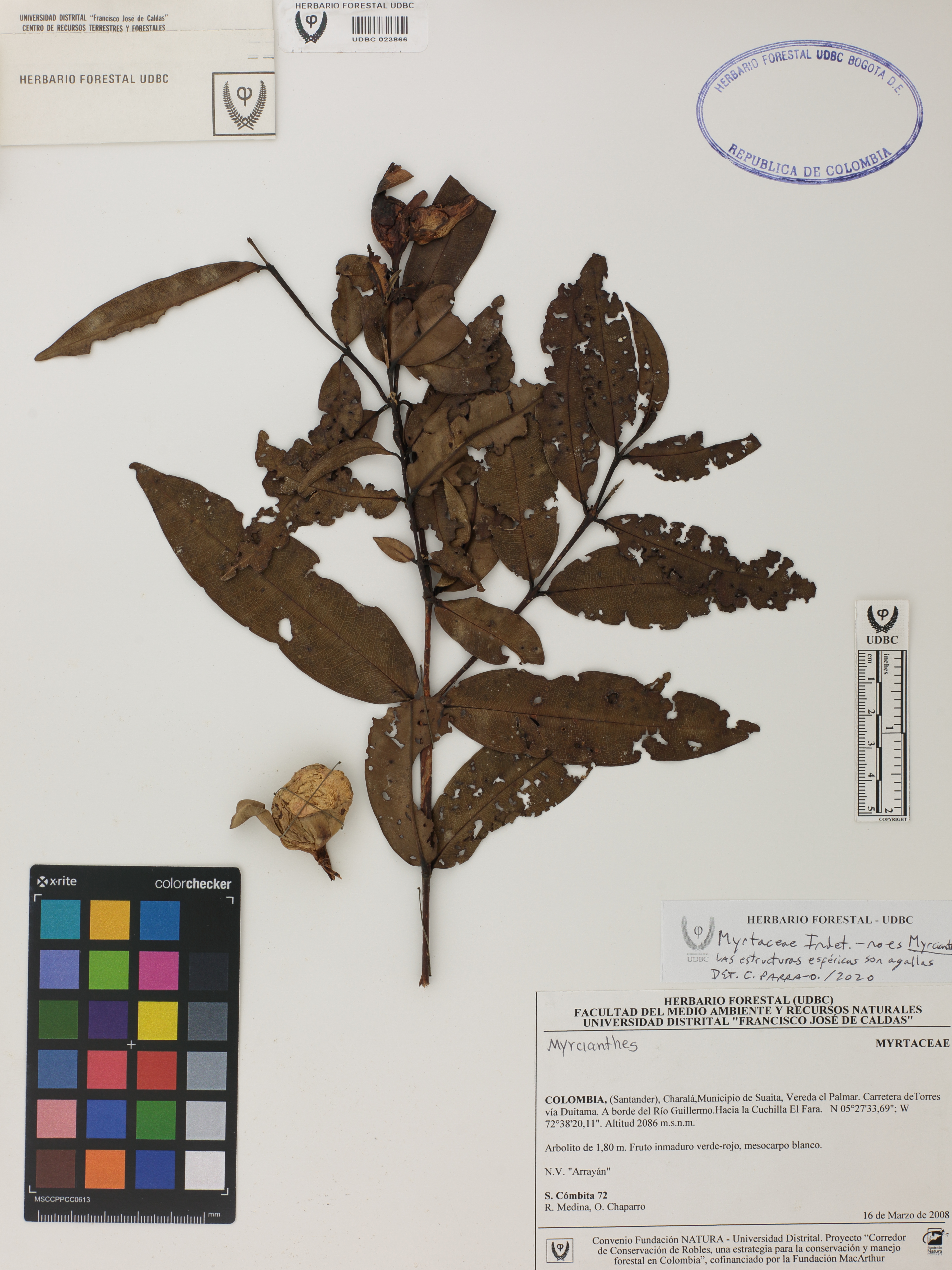 Fotografía del ejemplar Cómbita, S. 72, determinado como Myrtaceae en el año 2020