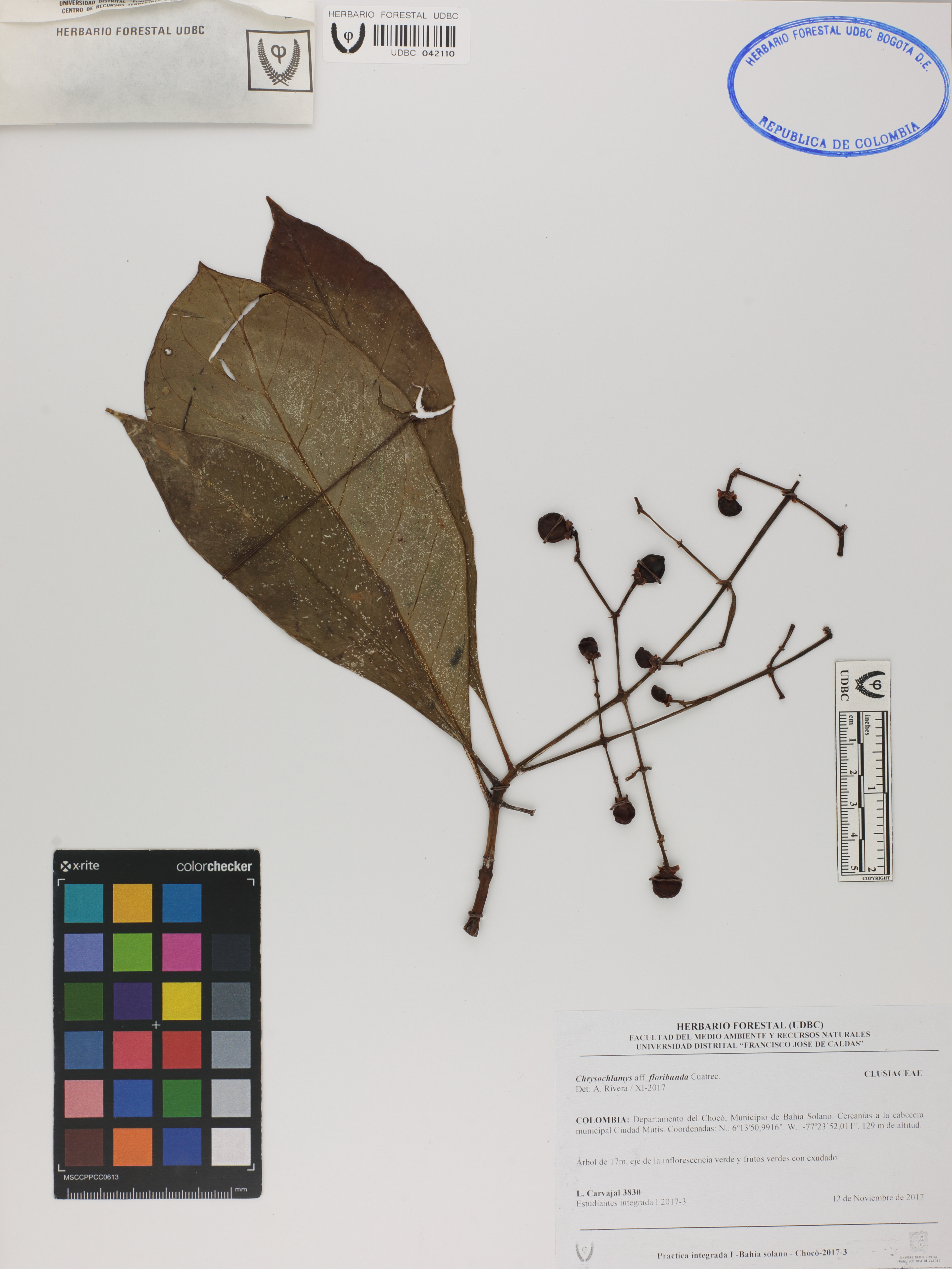Fotografía del ejemplar Carvajal, L. 3830, determinado como Chrysochlamys floribunda en el año 2017