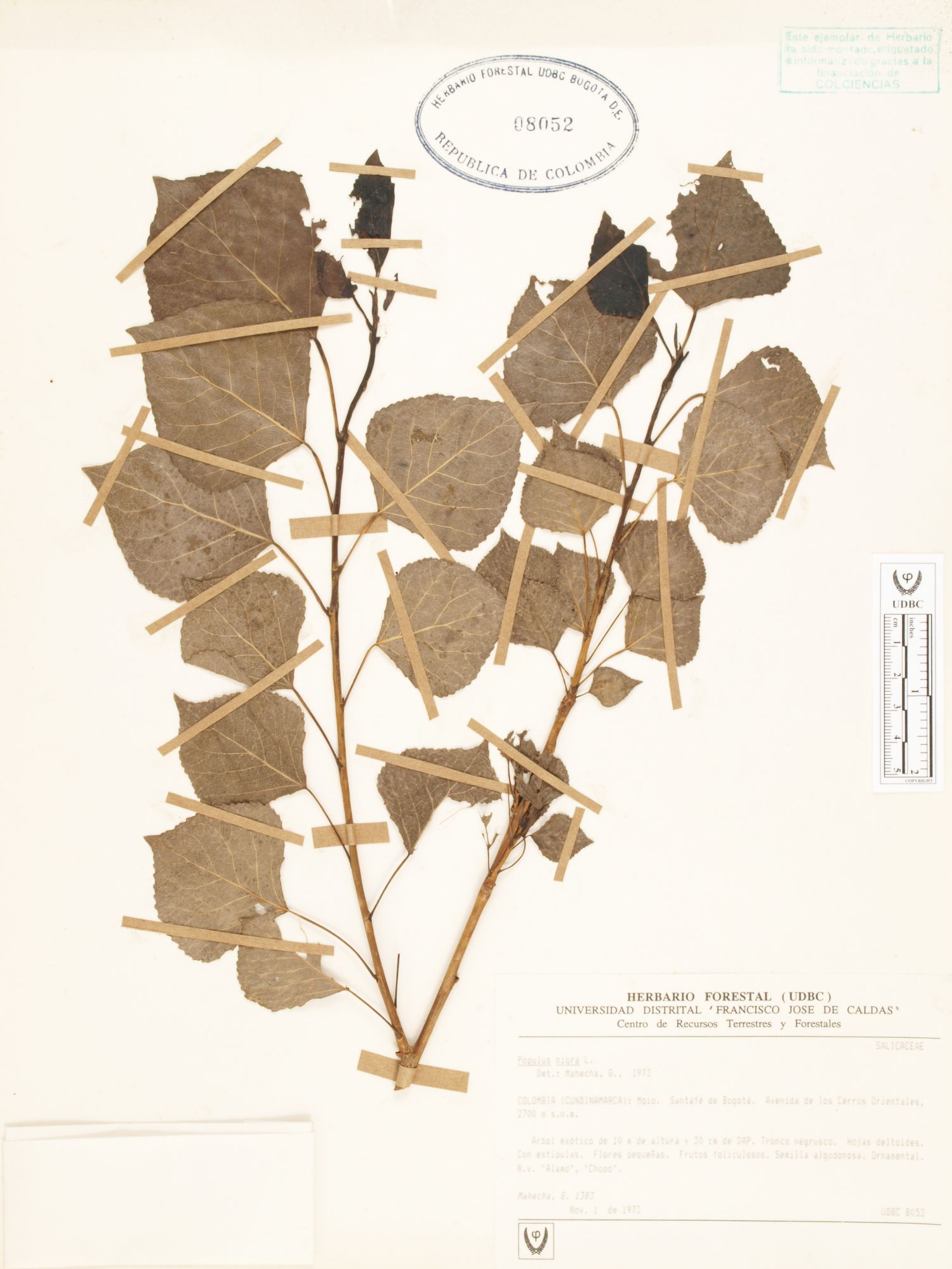 Fotografía del ejemplar Mahecha, G. 1383, determinado como Populus nigra en el año 1973