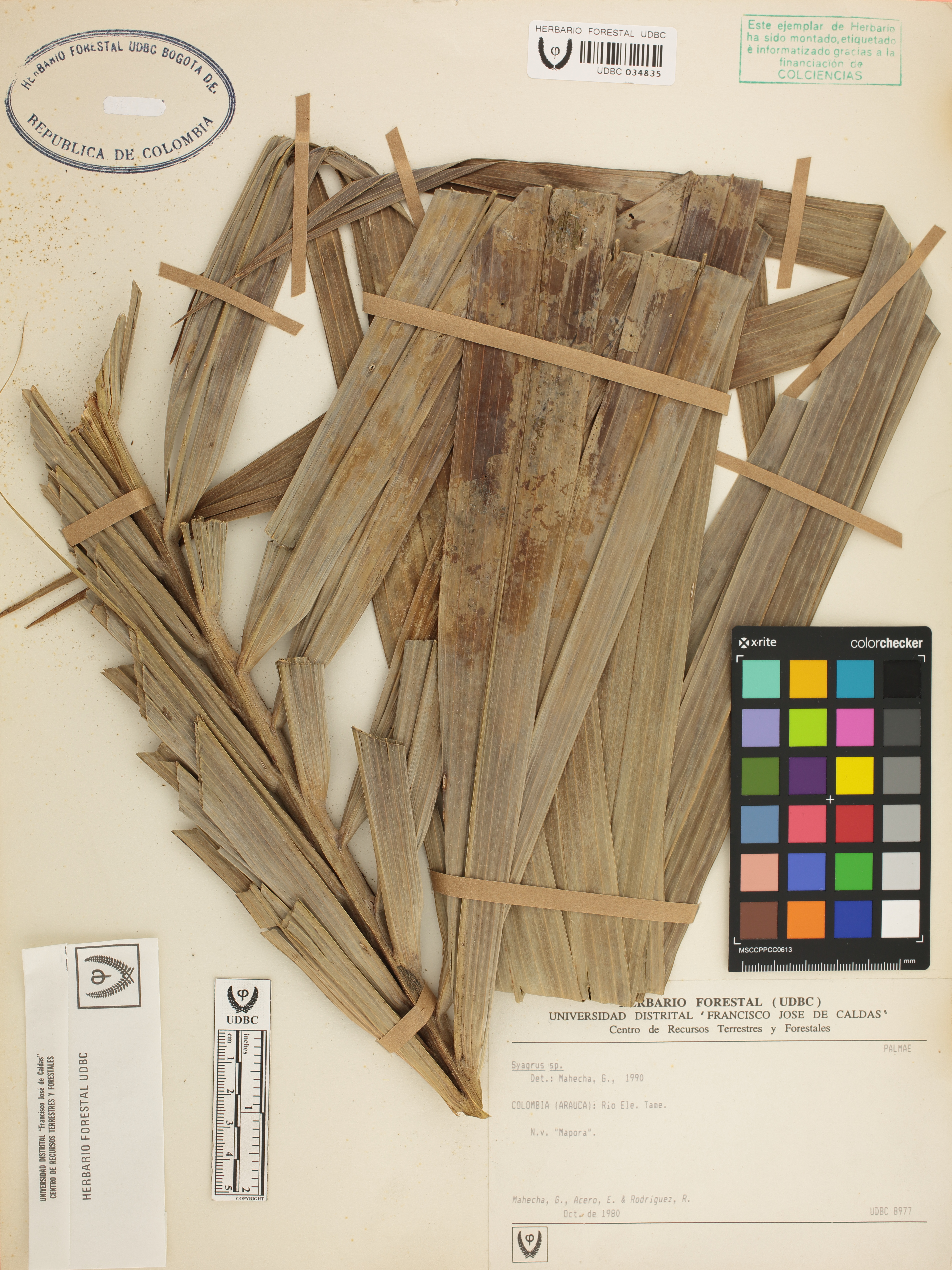 Fotografía del ejemplar Mahecha, G., determinado como Syagrus sp. en el año 1990