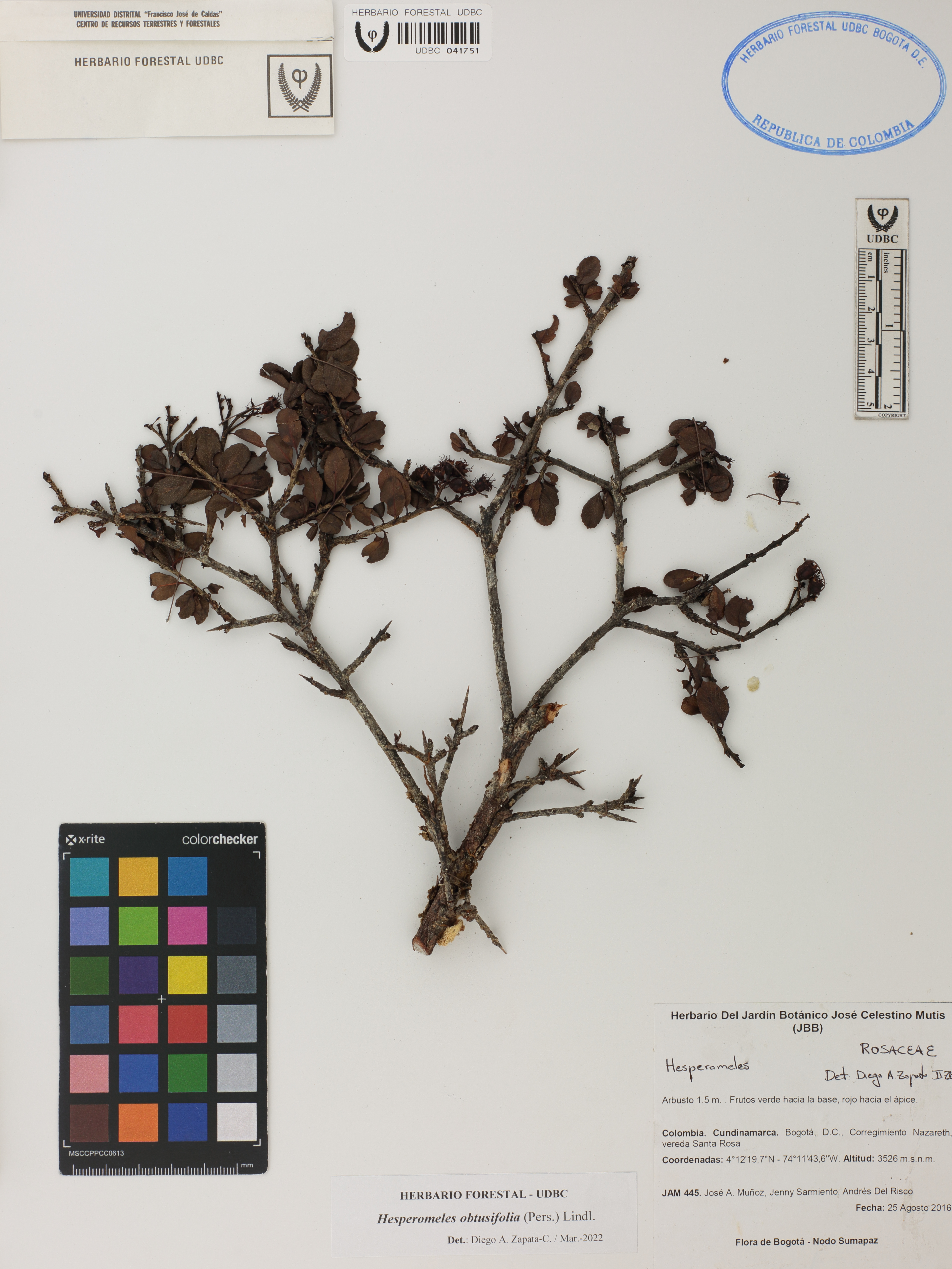Fotografía del ejemplar Muñoz, J. 445, determinado como Hesperomeles obtusifolia en el año 2022