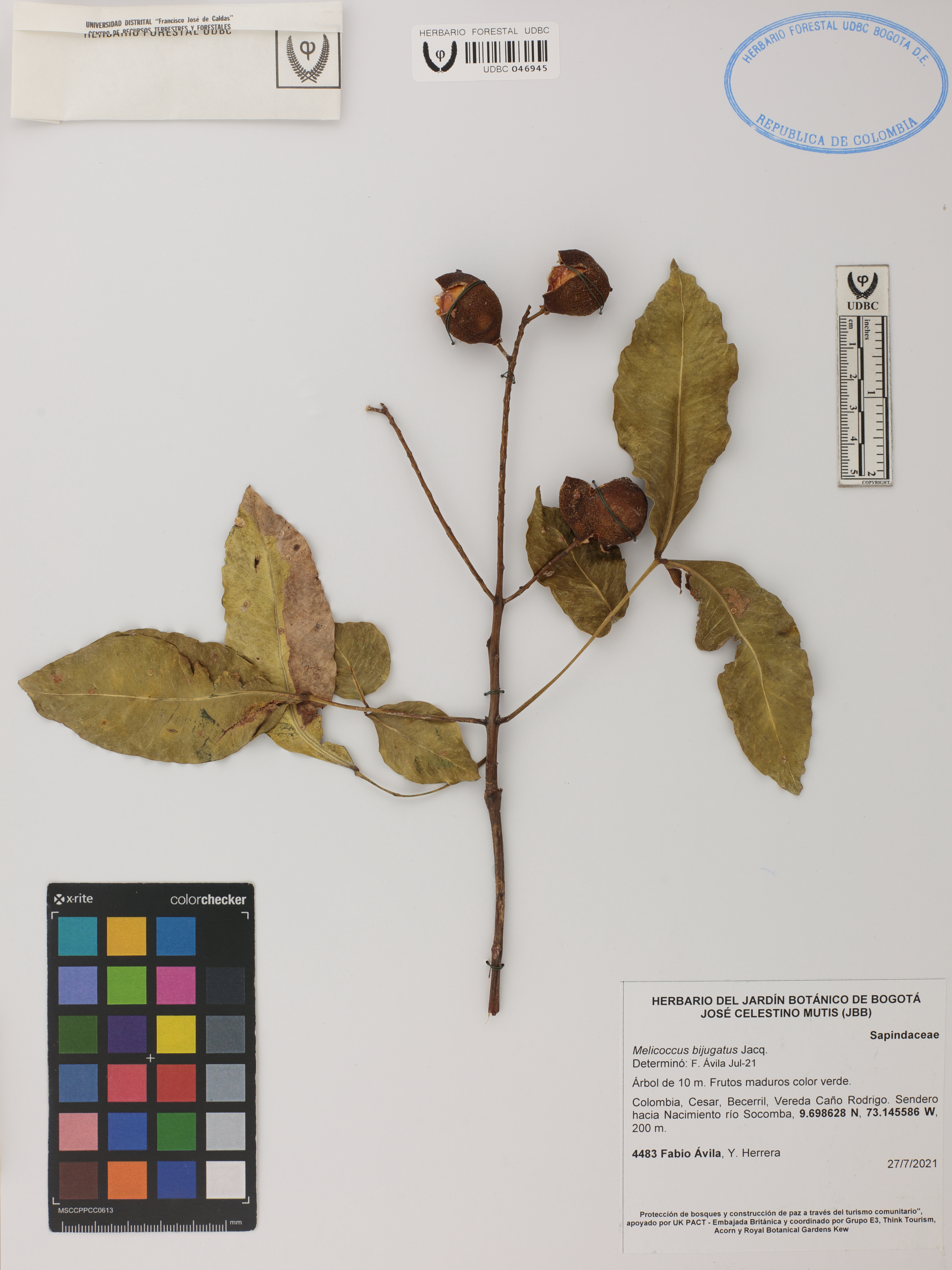 Fotografía del ejemplar Ávila, F. 4483, determinado como Melicoccus bijugatus en el año 2021