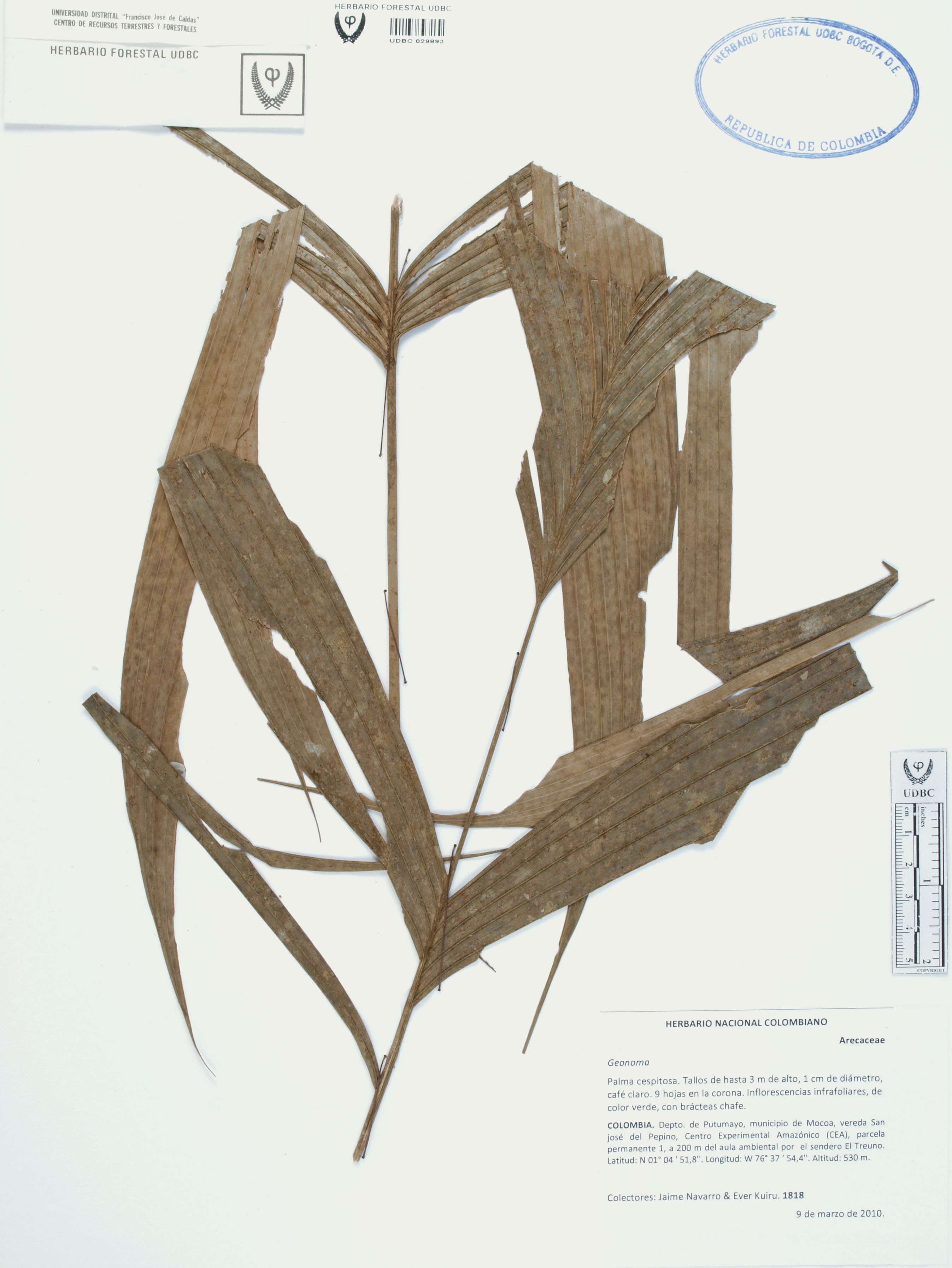 Fotografía del ejemplar Navarro, J. 1818, determinado como Geonoma sp.
