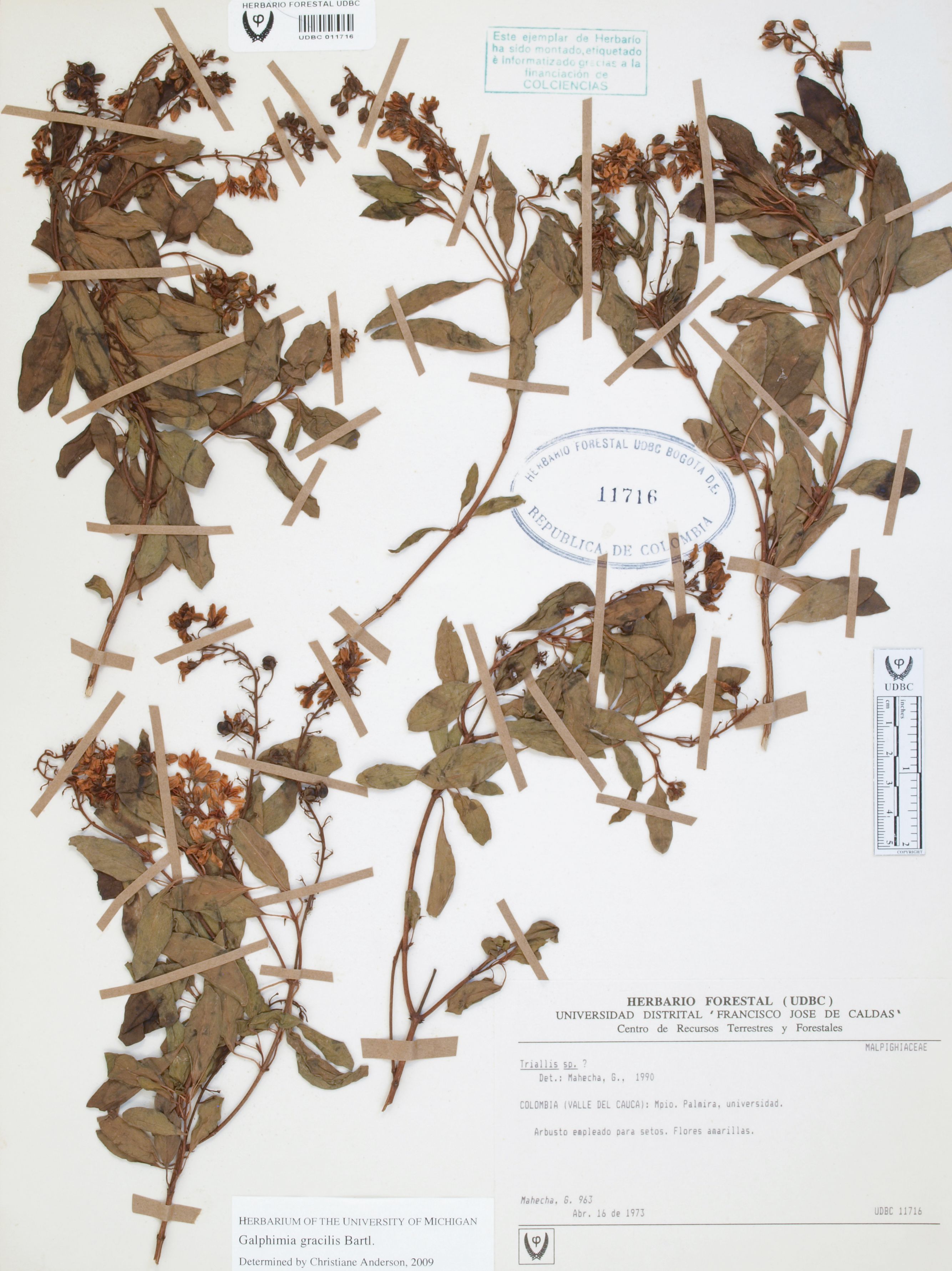 Fotografía del ejemplar Mahecha, G. 963, determinado como Galphimia gracilis en el año 2009