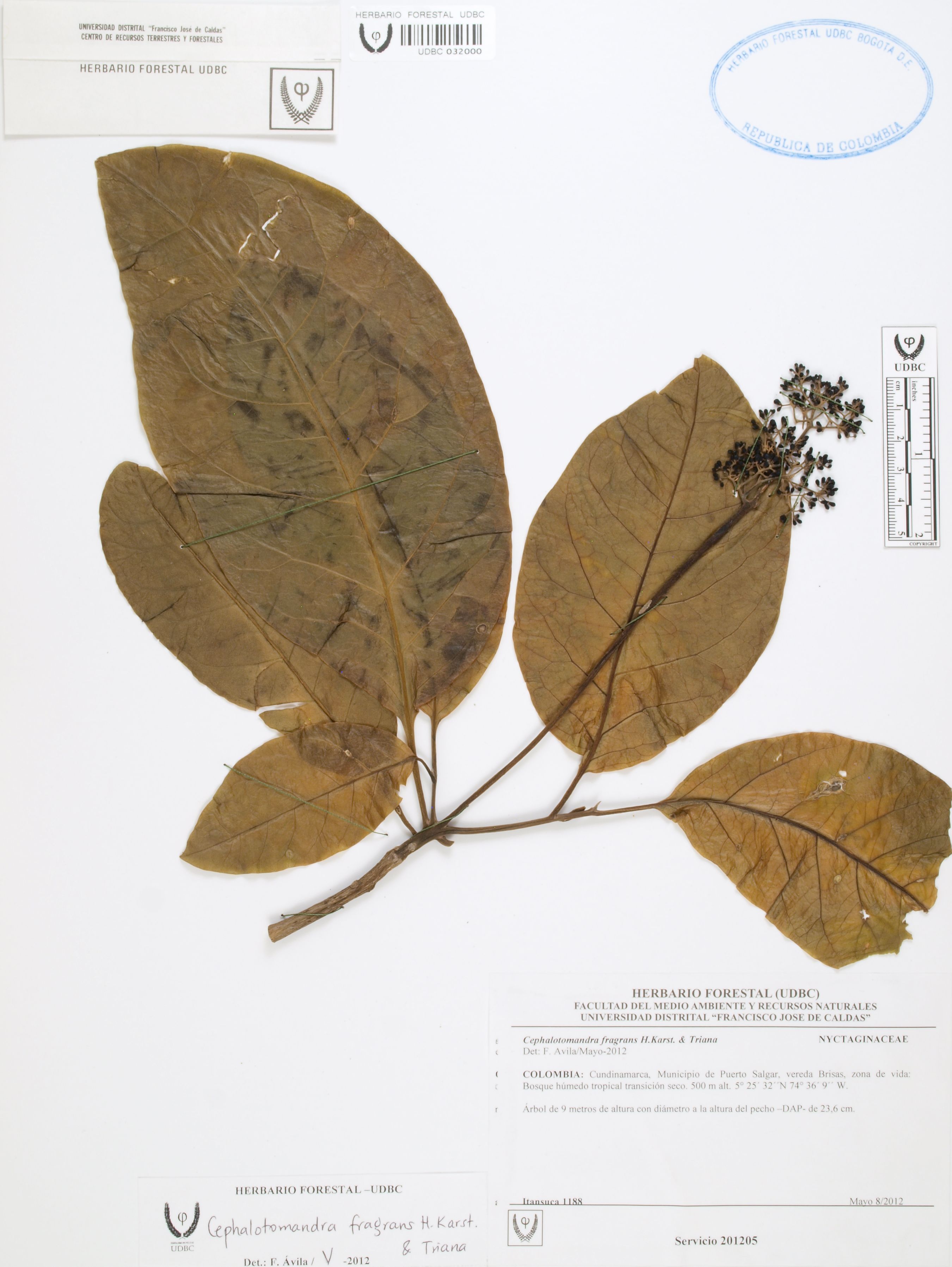 Fotografía del ejemplar SD 1188, determinado como Cephalotomandra fragrans en el año 2012
