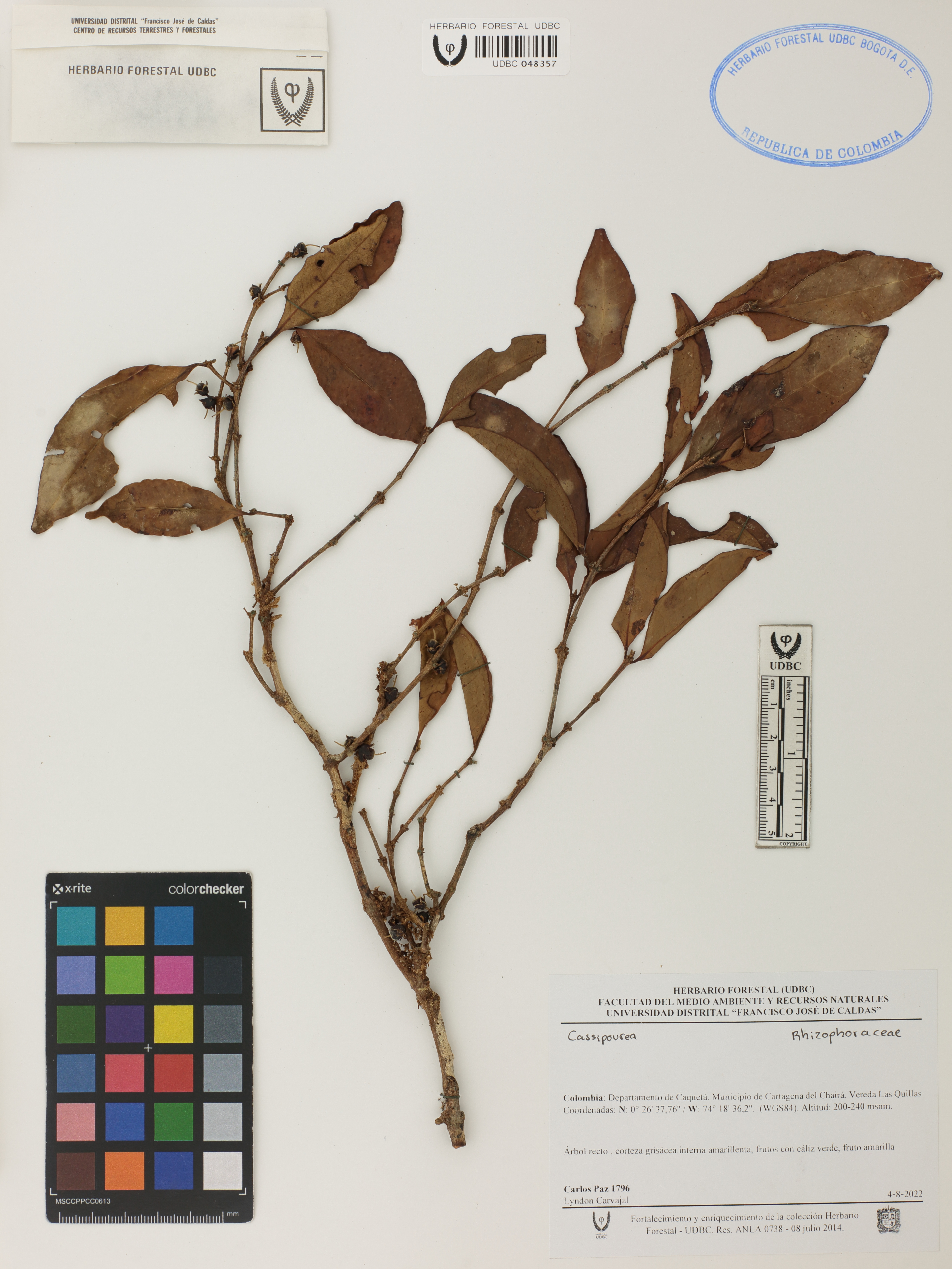 Fotografía del ejemplar Paz, Carlos A. 1796, determinado como Cassipourea sp. en el año 2022