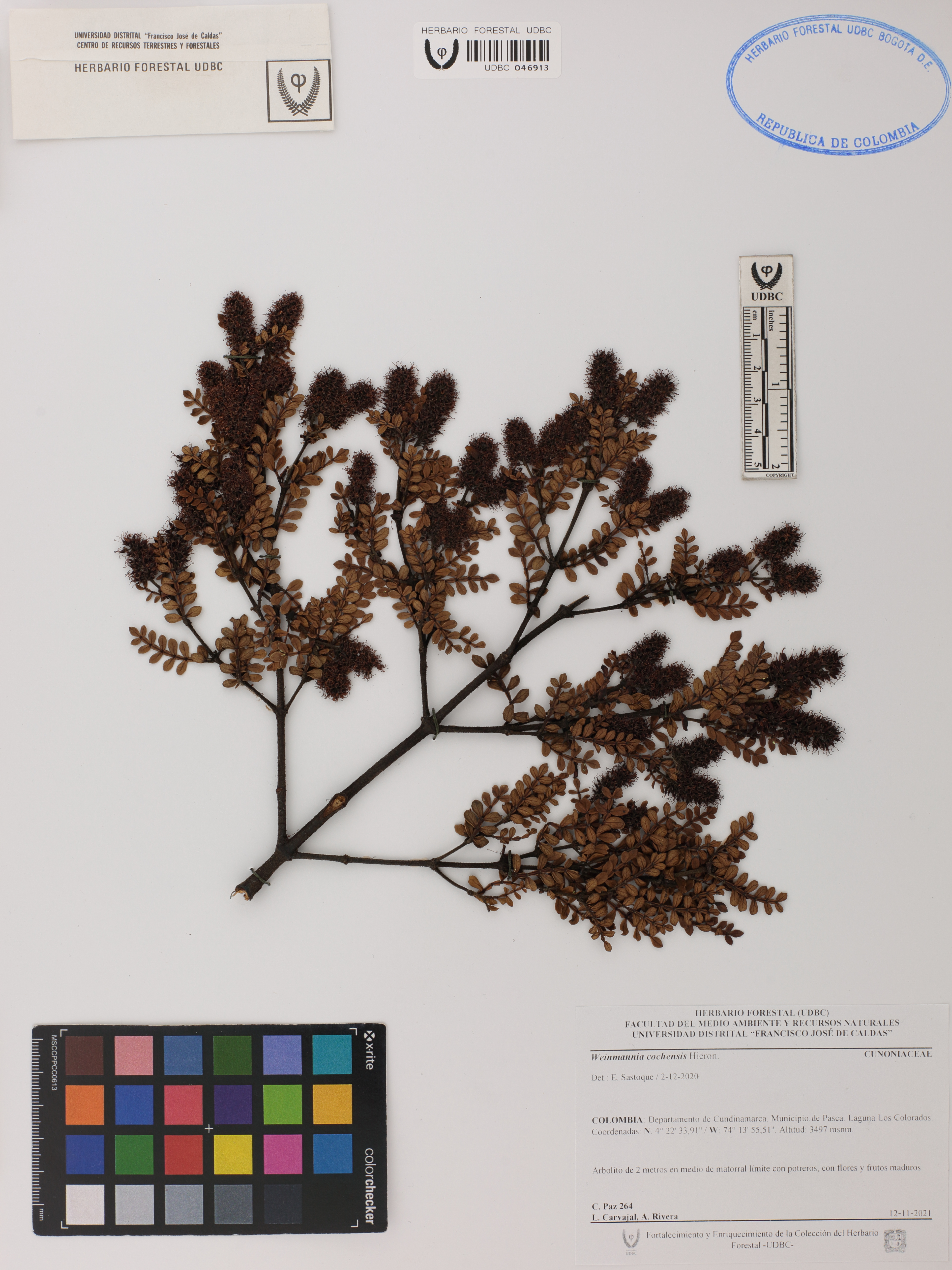 Fotografía del ejemplar Paz, C. 264, determinado como Weinmannia cochensis en el año 2020