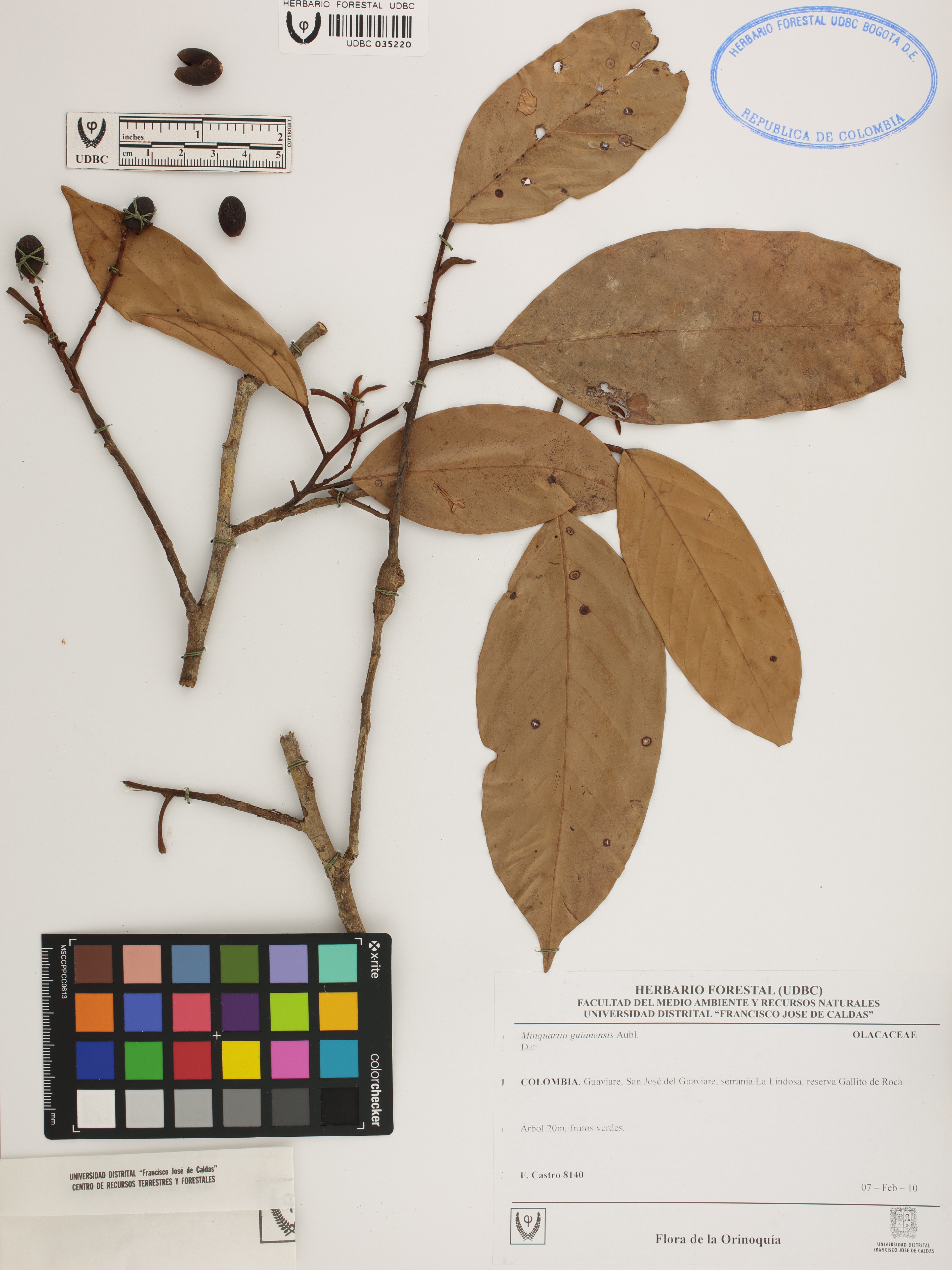| dc.description | Fotografía del ejemplar Castro, F. 8140, determinado como Minquartia guianensis | |