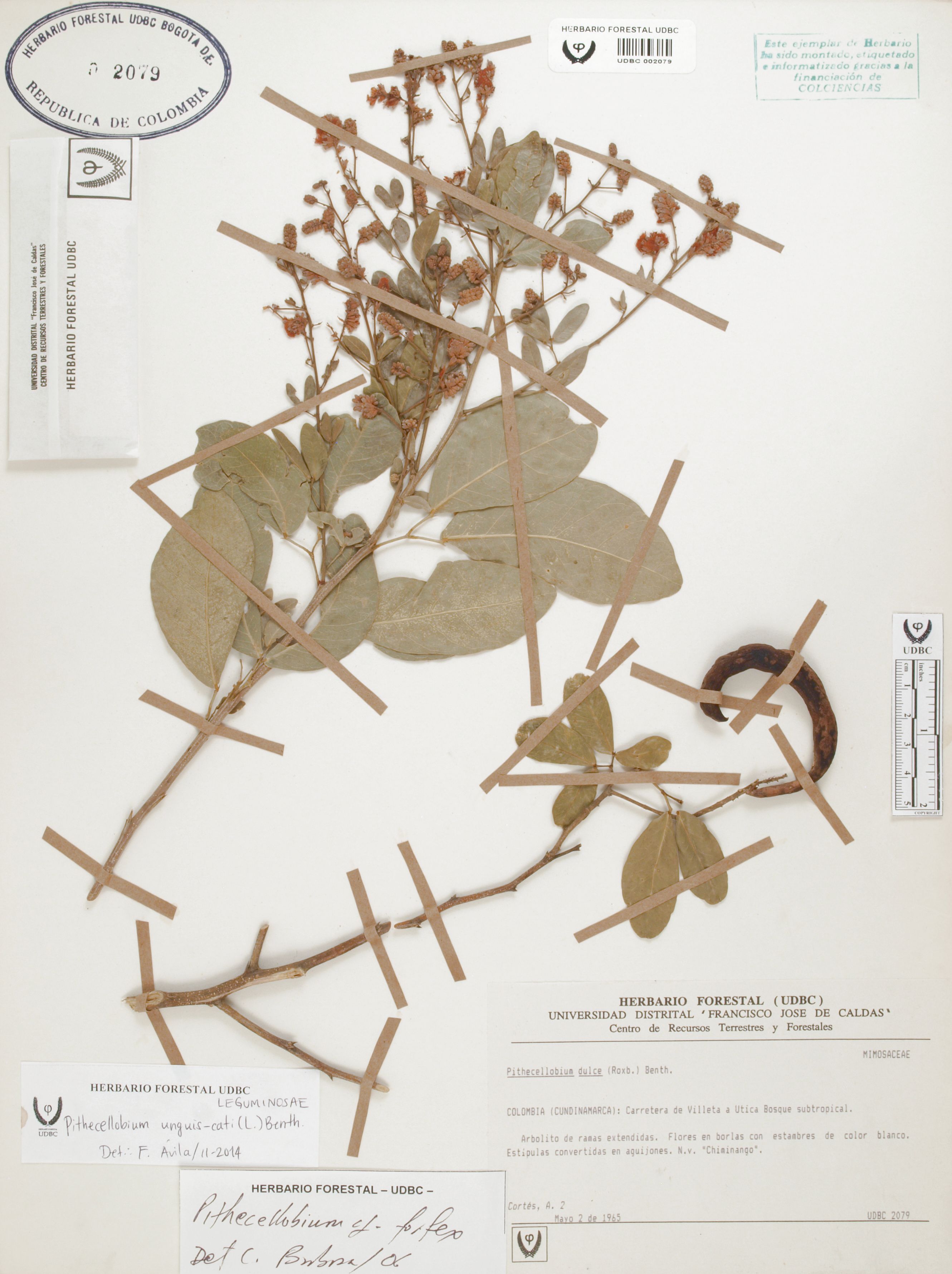 Fotografía del ejemplar Cortés, A. 2, determinado como Pithecellobium unguis-cati en el año 2014