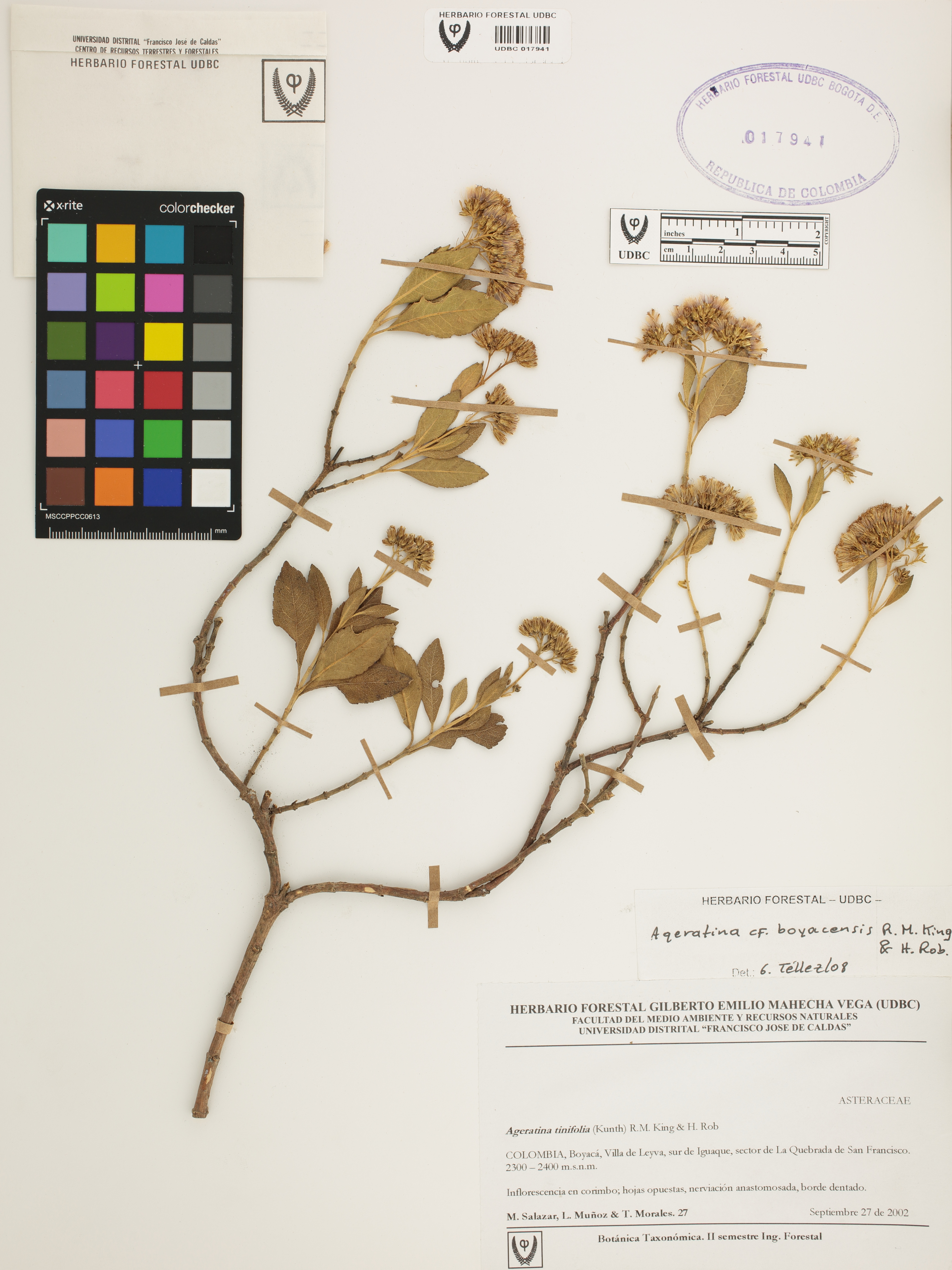 Fotografía del ejemplar Salazar, M. 27, determinado como Ageratina boyacensis en el año 2008