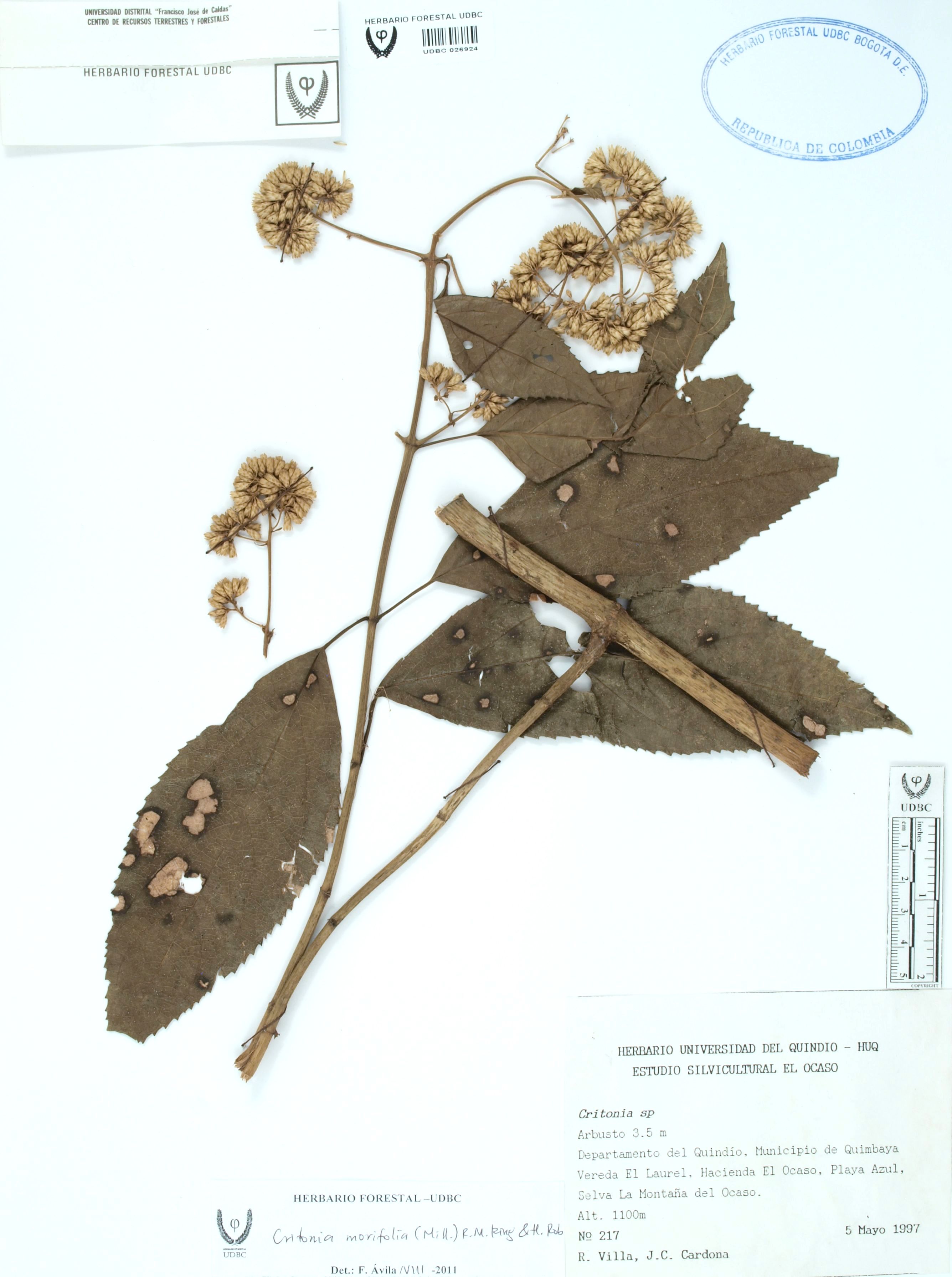 Fotografía del ejemplar Villa, R. 217, determinado como Critonia morifolia en el año 2011