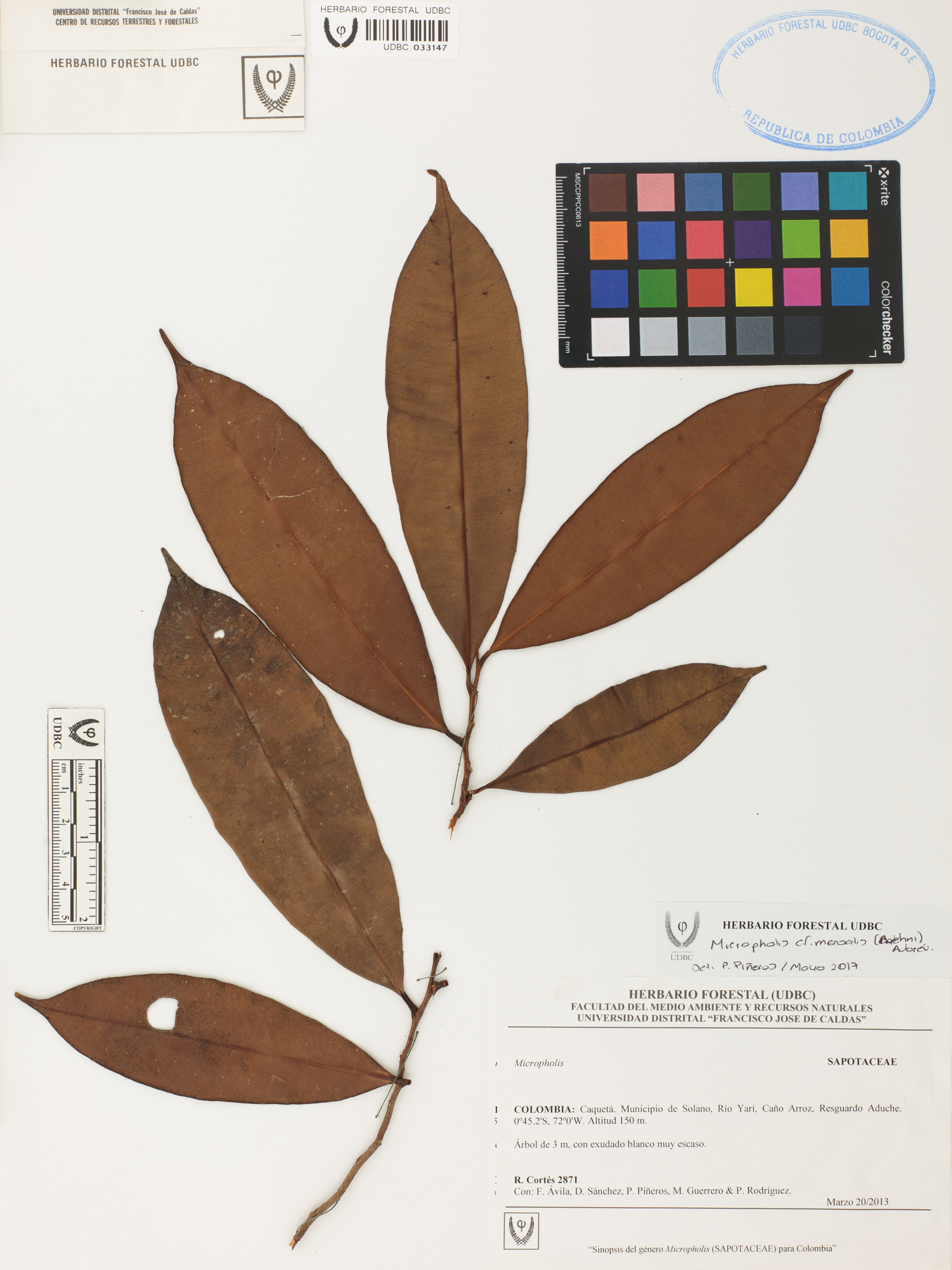 Fotografía del ejemplar Cortés, R. 2871, determinado como Micropholis mensalis en el año 2017
