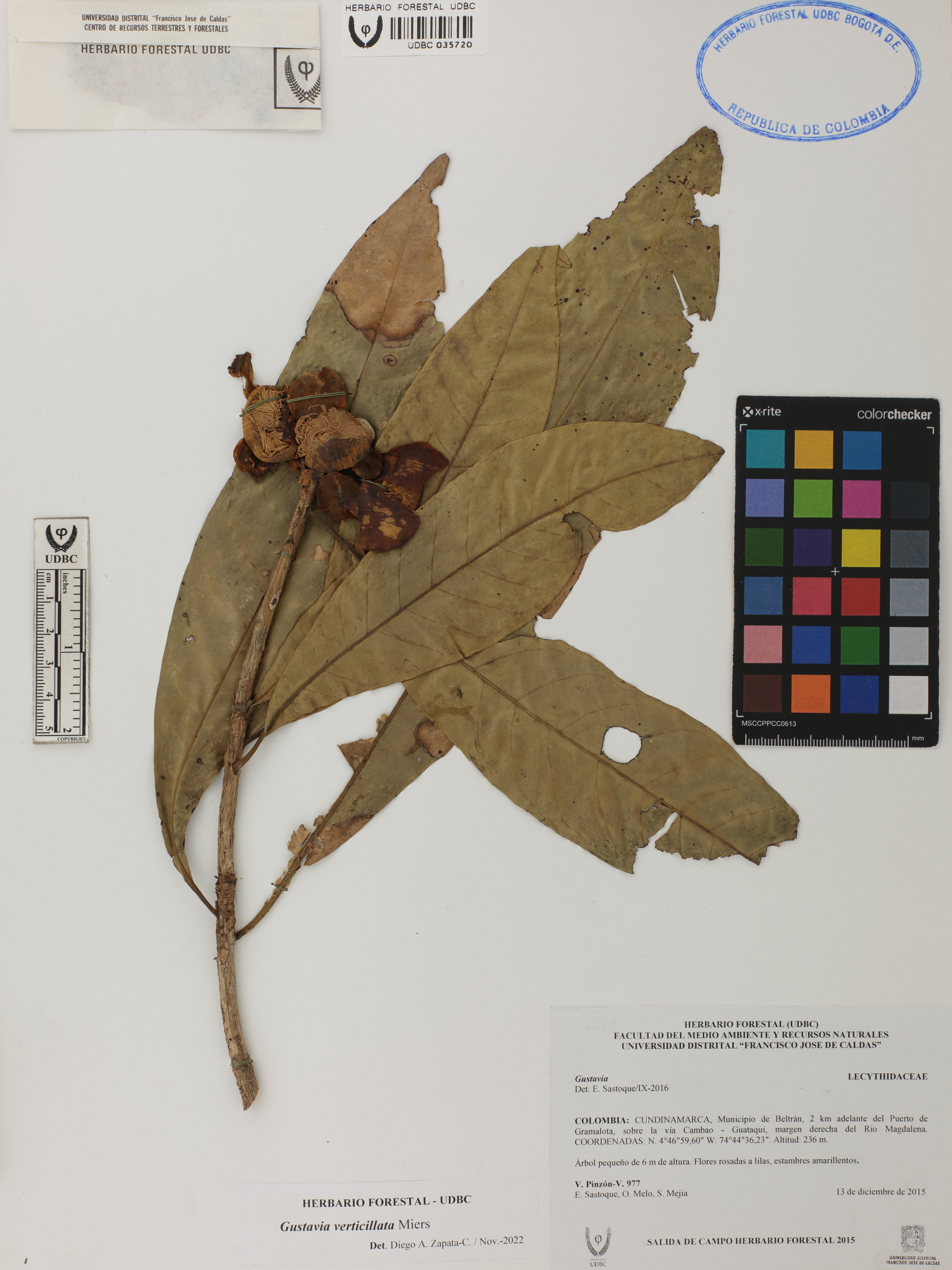 Fotografía del ejemplar Pinzón-V., V. 977, determinado como Gustavia verticillata en el año 2022