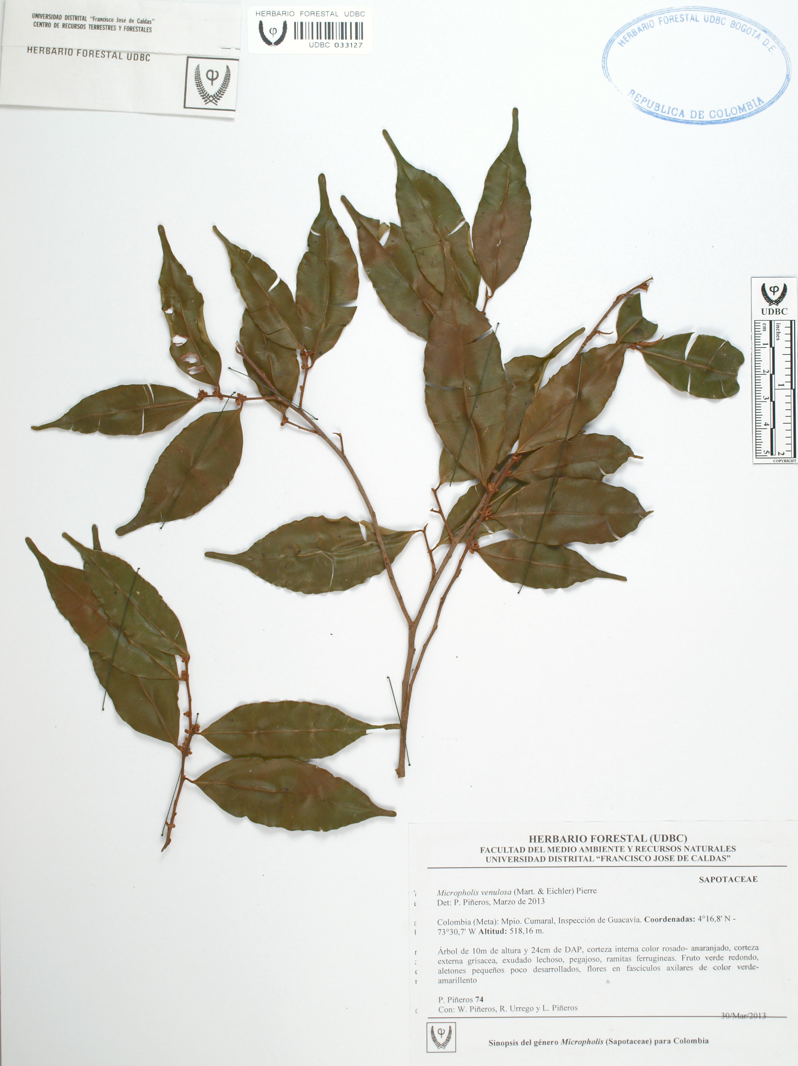 | dc.description | Fotografía del ejemplar Piñeros, P. 74, determinado como Micropholis venulosa en el año 2013 | |