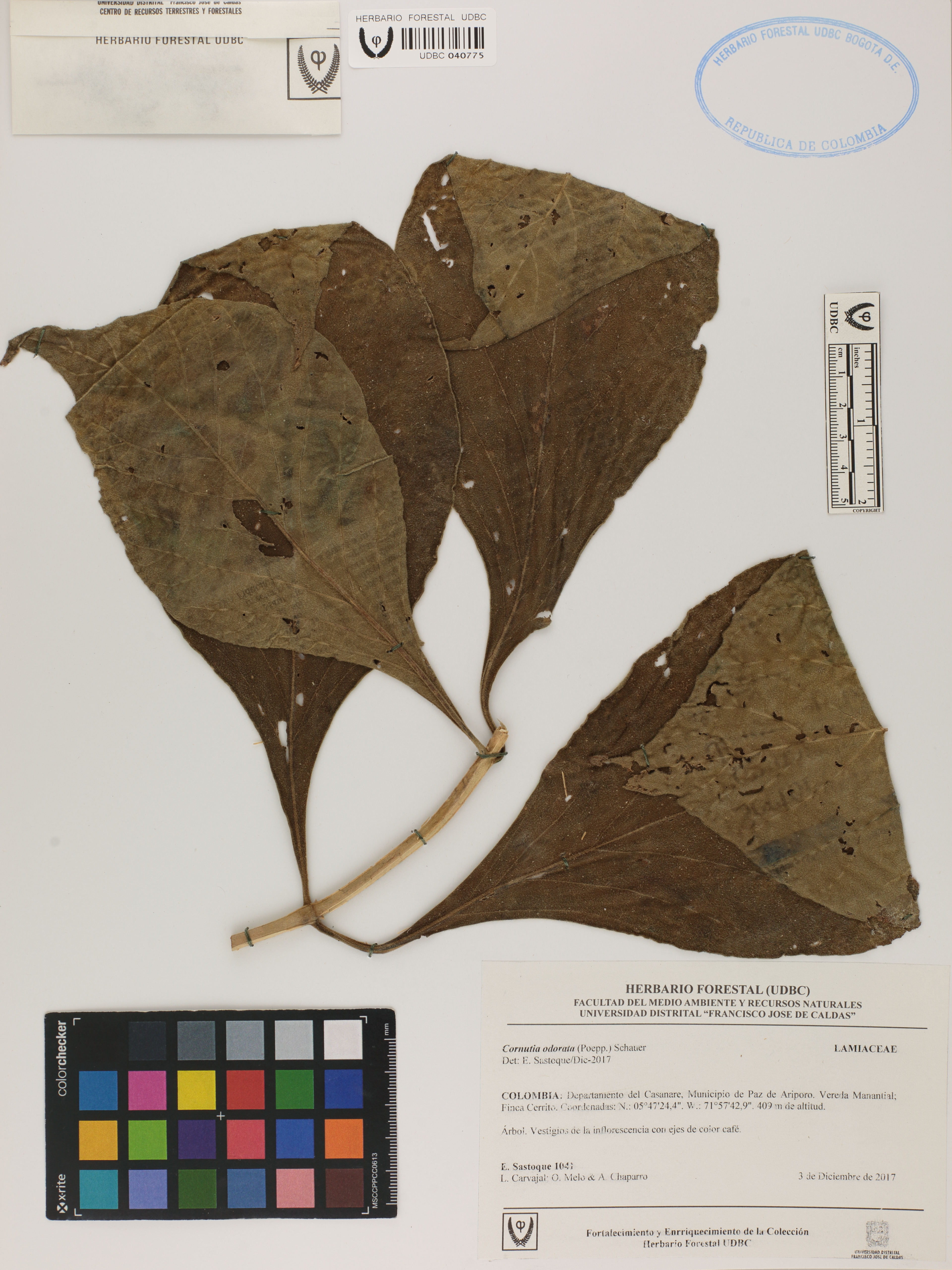 Fotografía del ejemplar Sastoque, E. 1041, determinado como Cornutia odorata en el año 2017