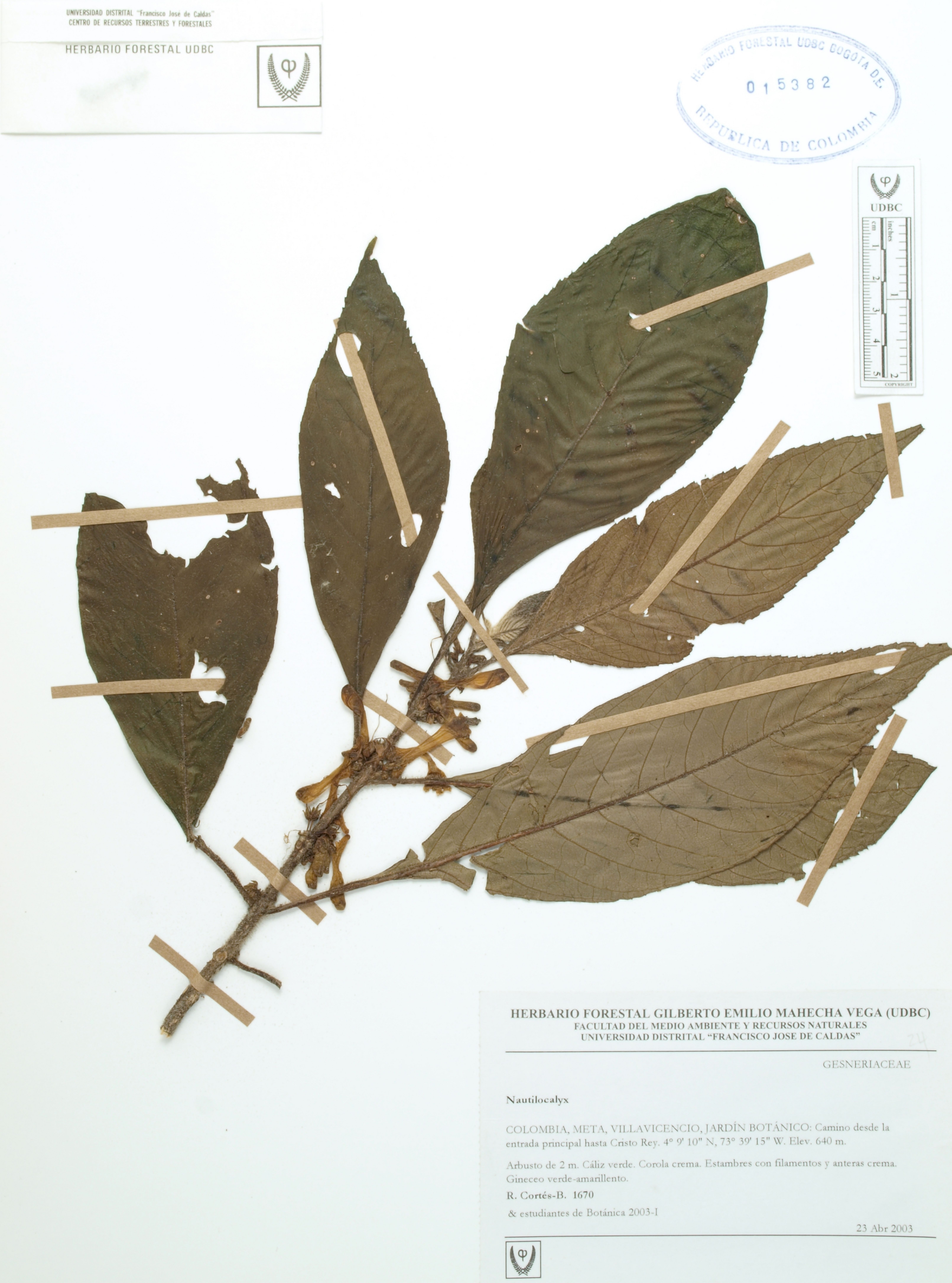 Fotografía del ejemplar Cortés-B., R. 1670, determinado como Besleria gibbosa en el año 2014