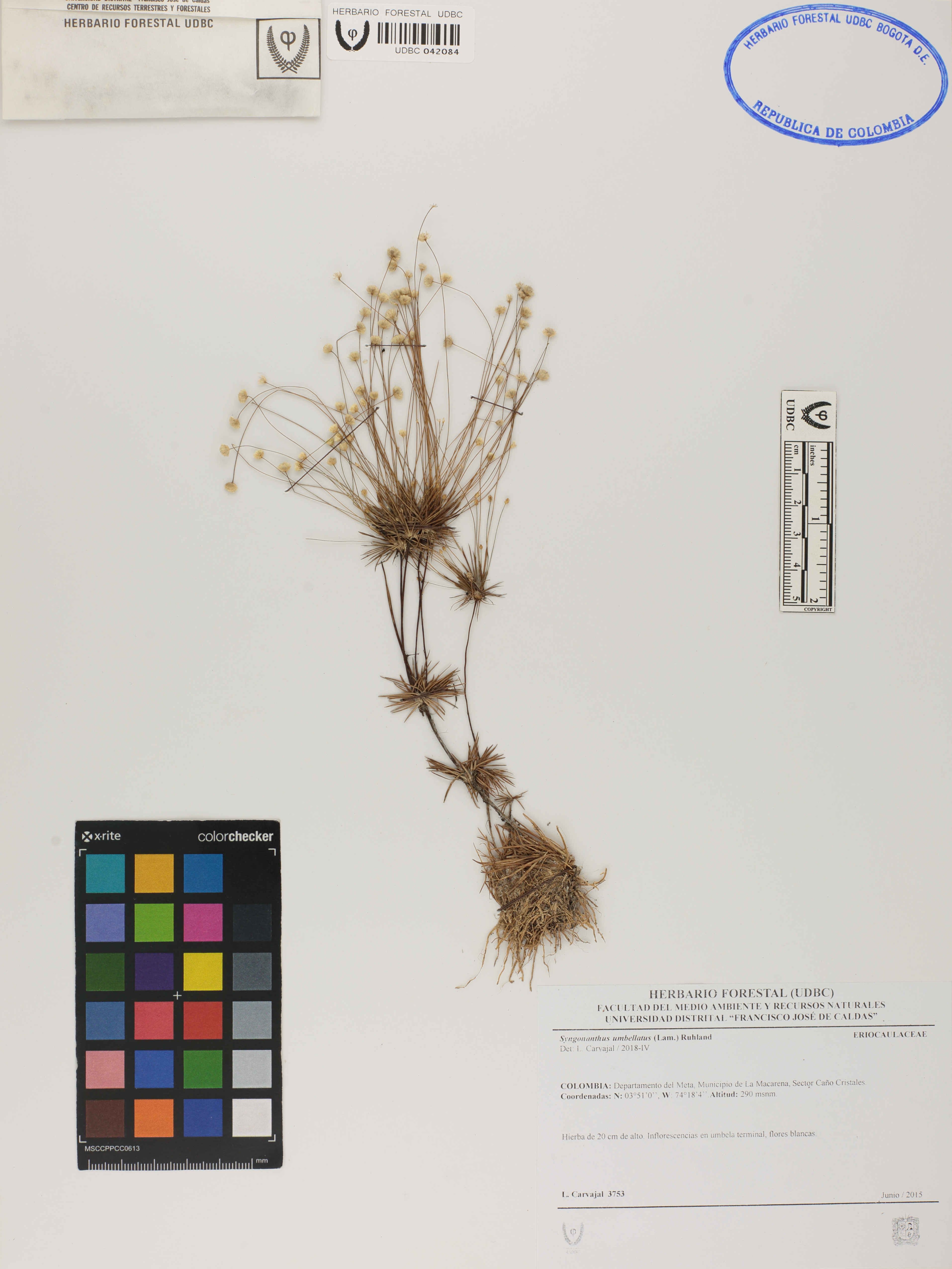 | dc.description | Fotografía del ejemplar Carvajal, L. 3753, determinado como Syngonanthus umbellatus en el año 2018 | |