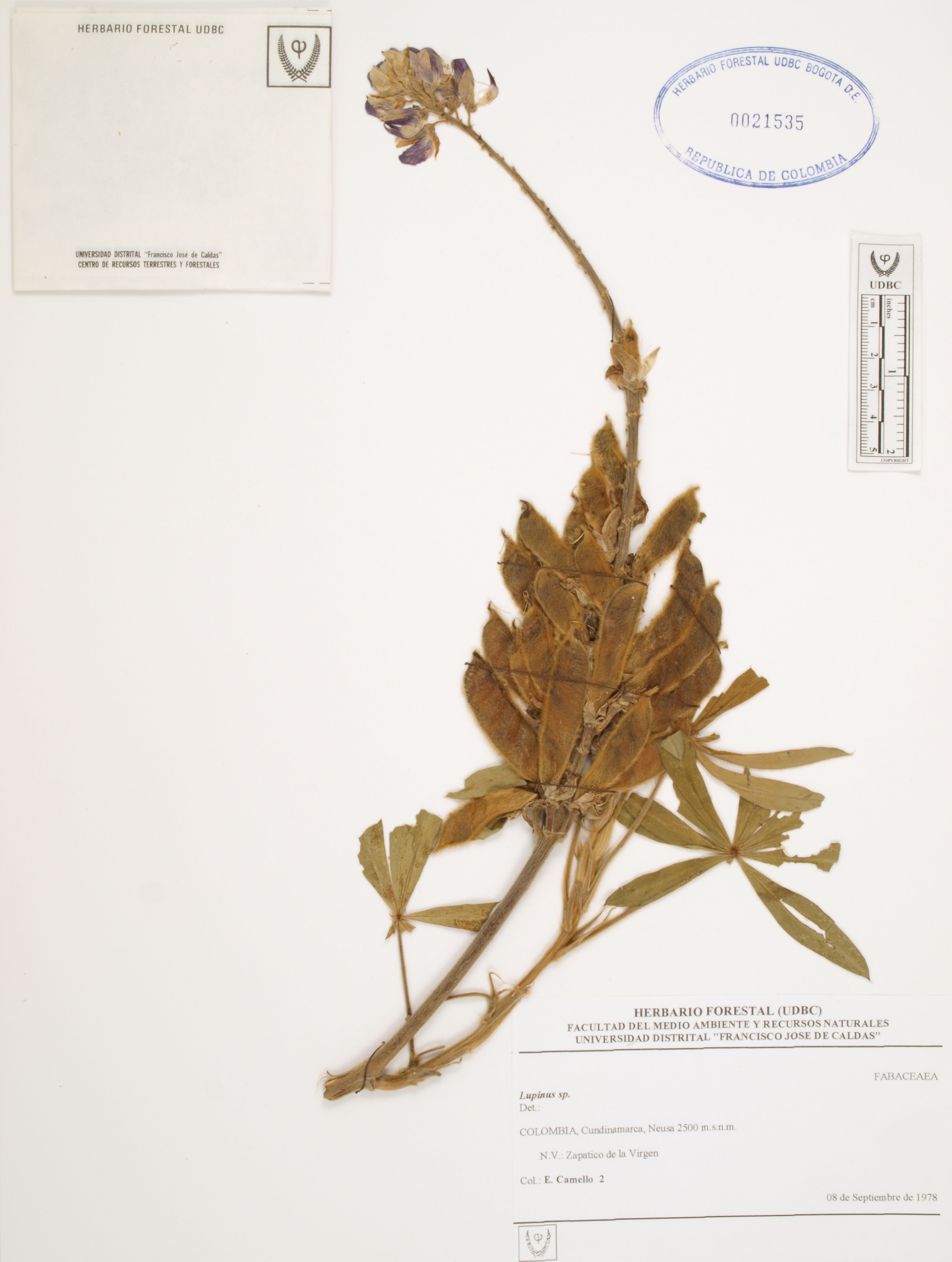 Fotografía del ejemplar Camello, E. 2, determinado como Lupinus sp.