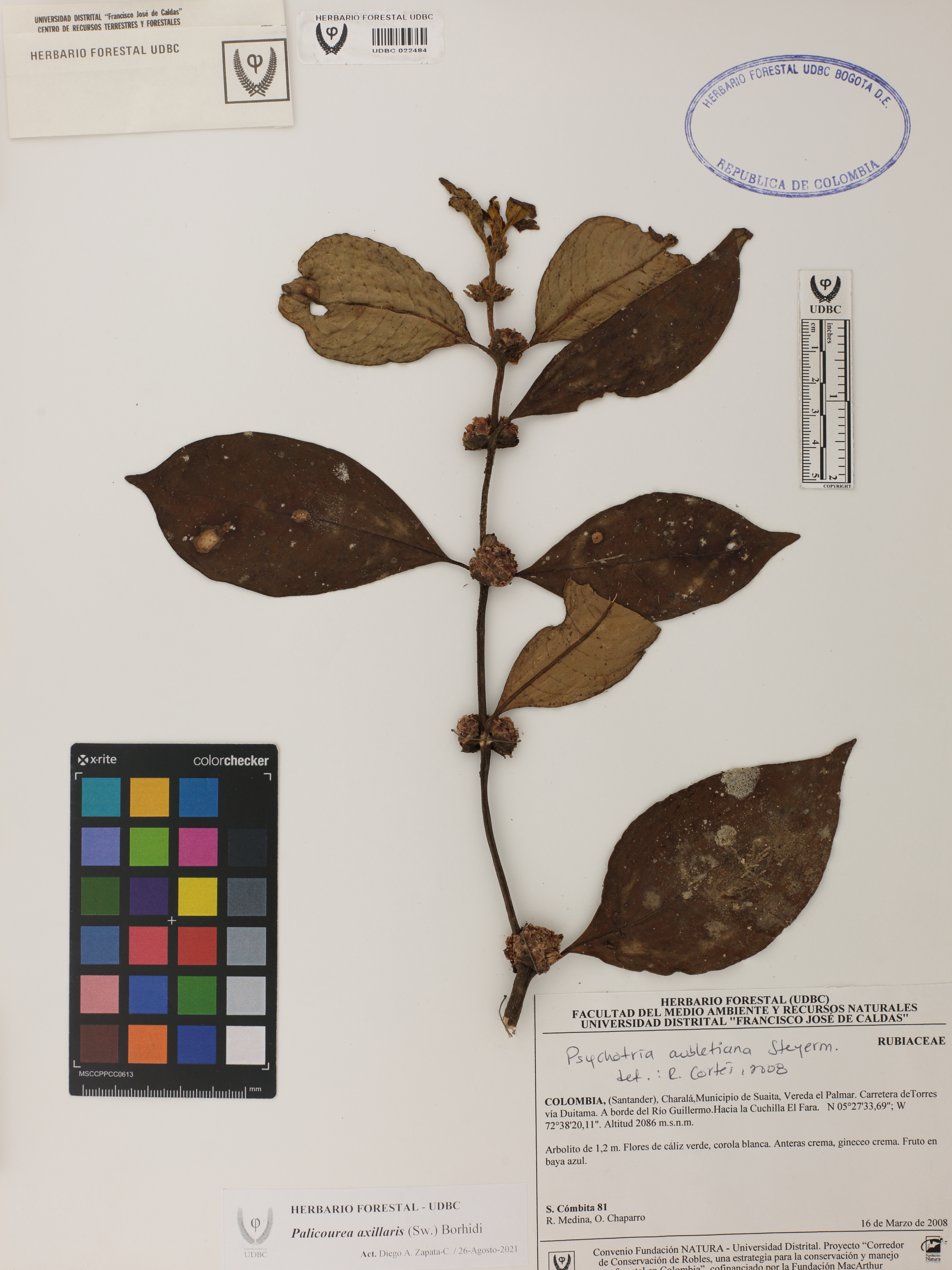| dc.description | Fotografía del ejemplar Cómbita, S. 81, determinado como Palicourea axillaris en el año 2008 | |