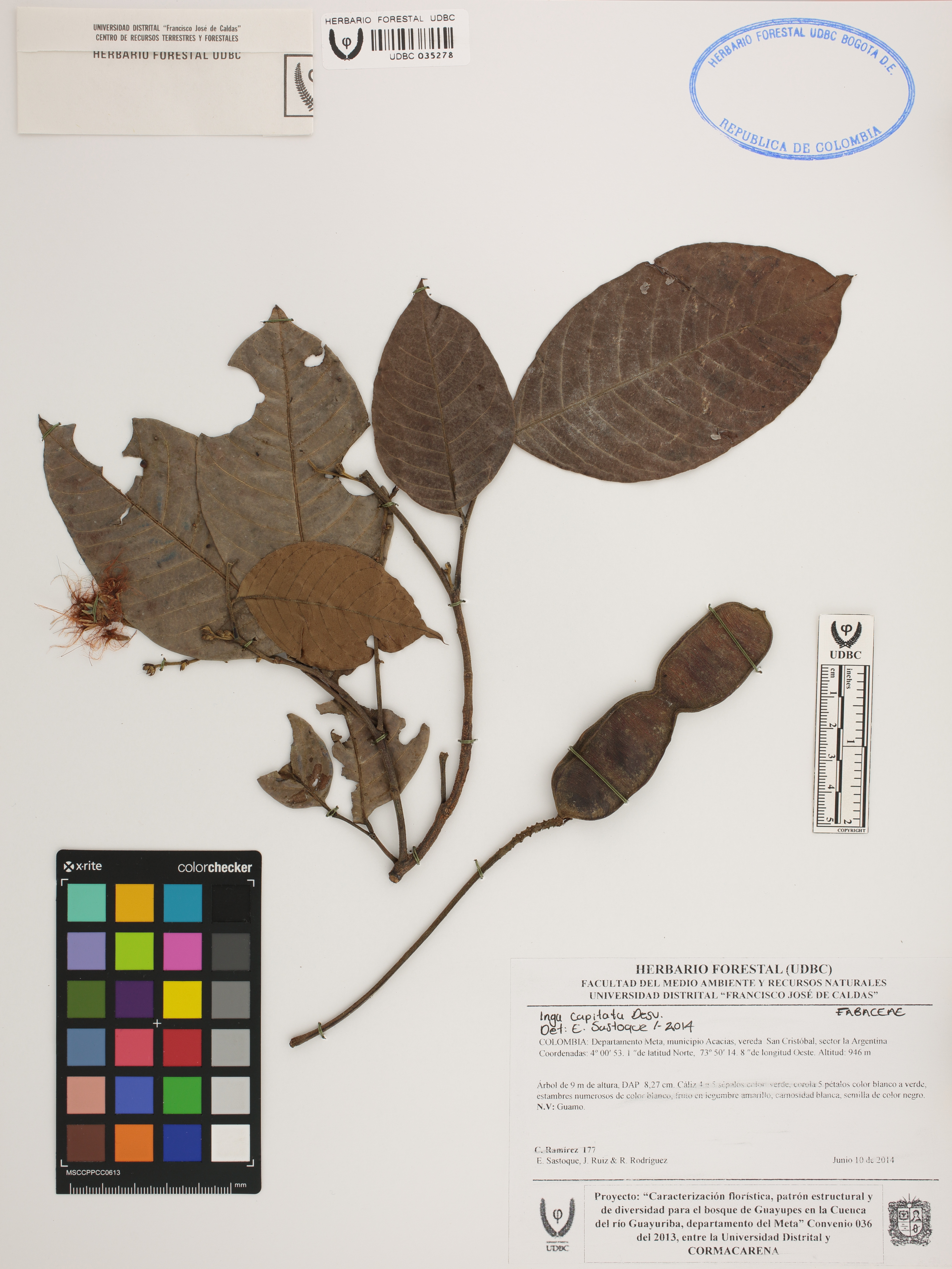 Fotografía del ejemplar Ramírez, C. 177, determinado como Inga capitata en el año 2014