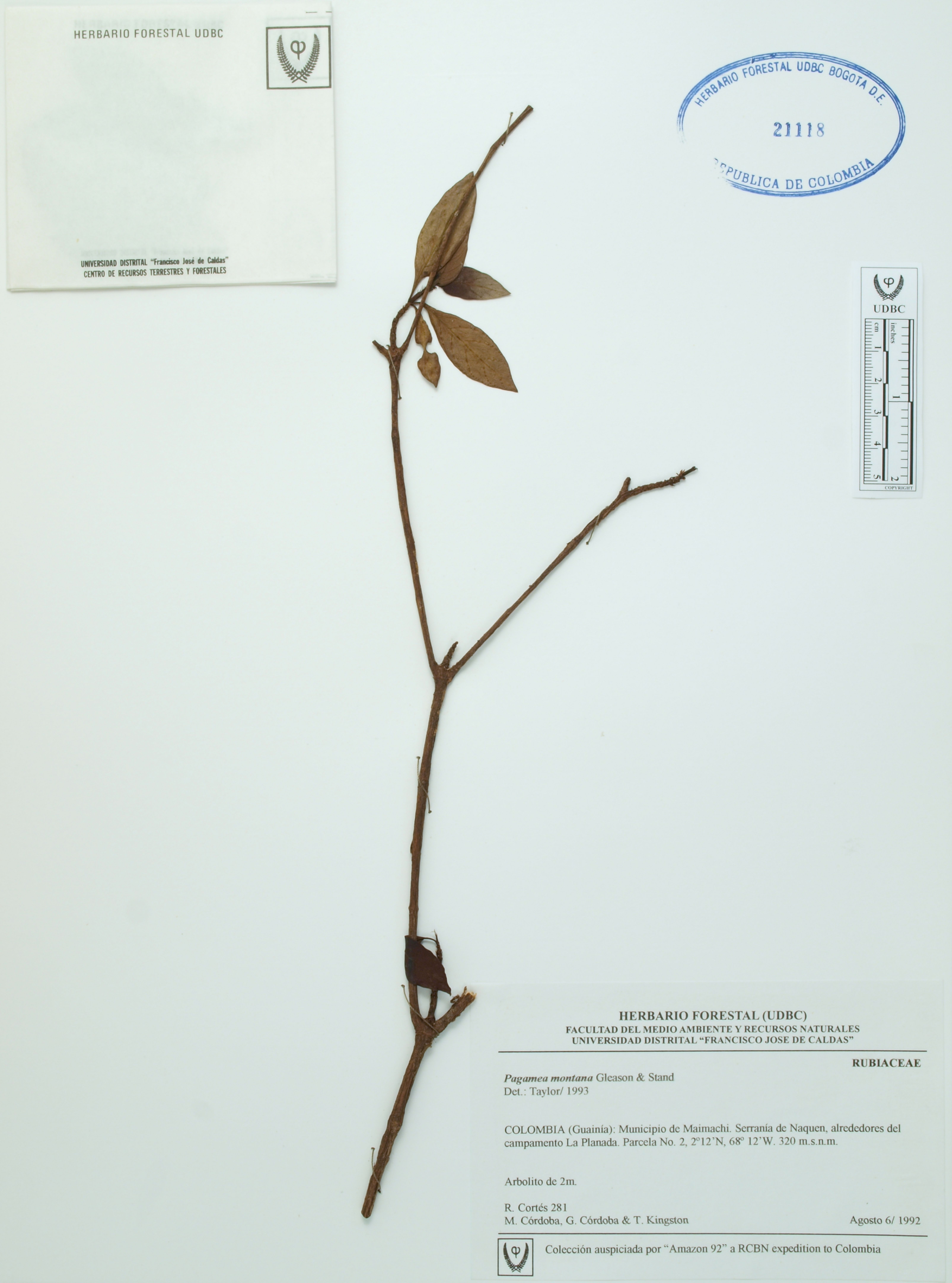 Fotografía del ejemplar Cortés-B., R. 281, determinado como Pagamea montana en el año 1993