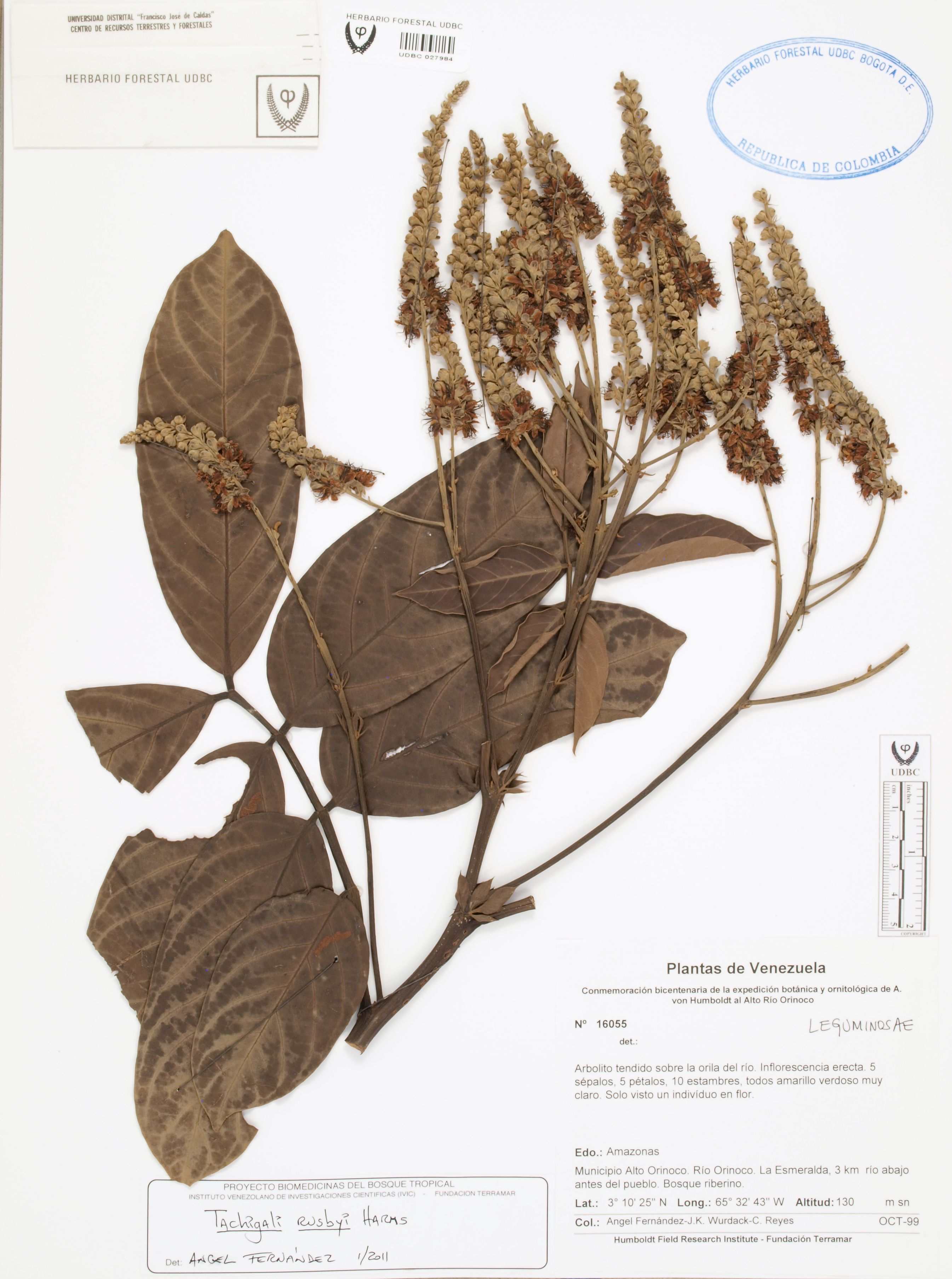 Fotografía del ejemplar Fernández, A. 16055, determinado como Tachigali rusbyi en el año 2011